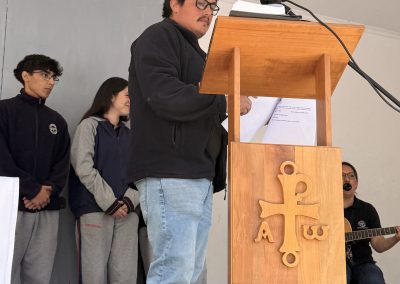Desde muy temprano, nuestro equipo de Pastoral recibió a los estudiantes con huevitos que simbolizan vida y esperanza, creando un ambiente de alegría y sentido comunitario. Más tarde, toda nuestra comunidad escolar se reunió en una formación general, un momento significativo para unirnos en torno a los valores que nos inspiran día a día: Fe, Justicia y Verdad.