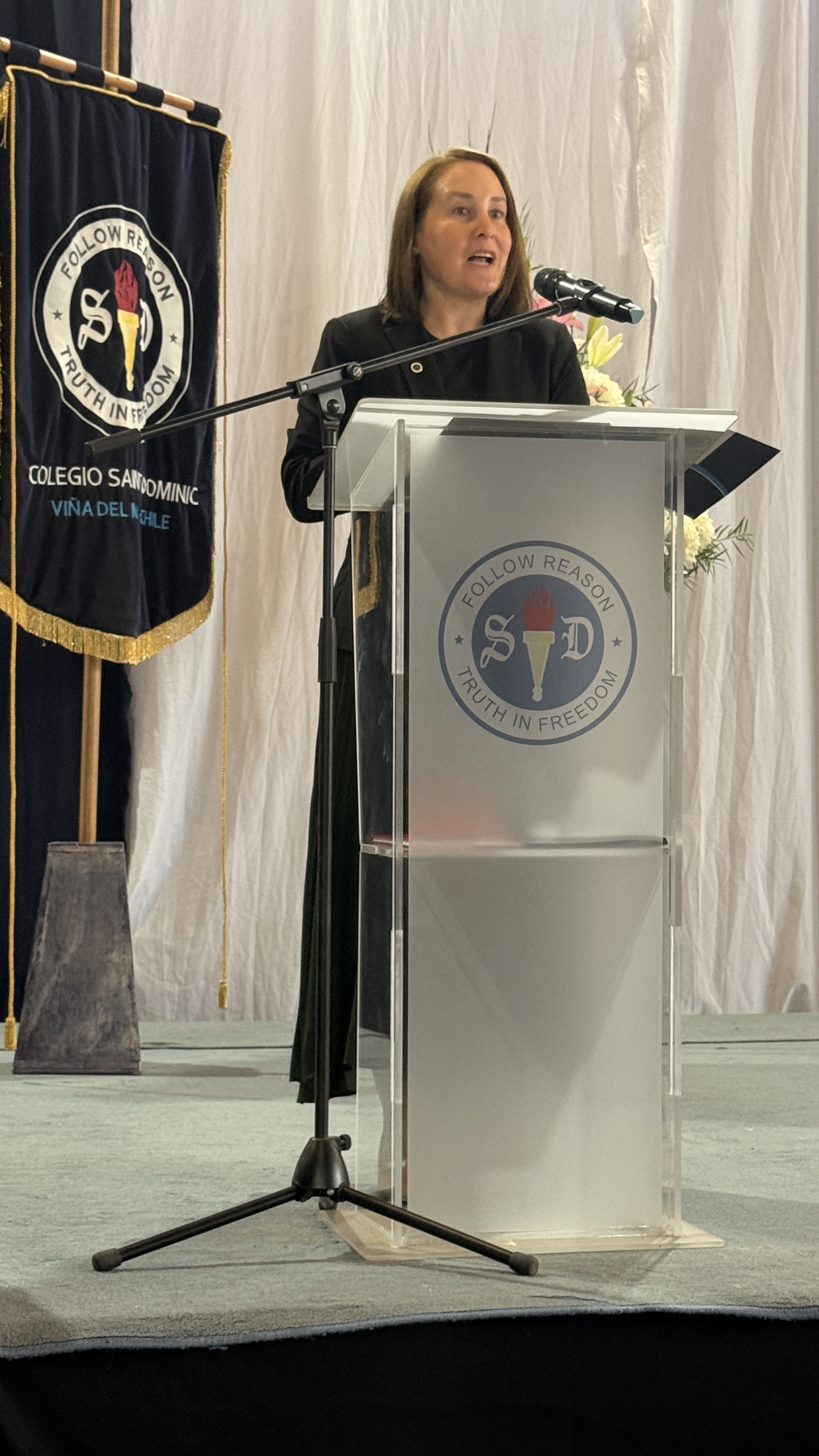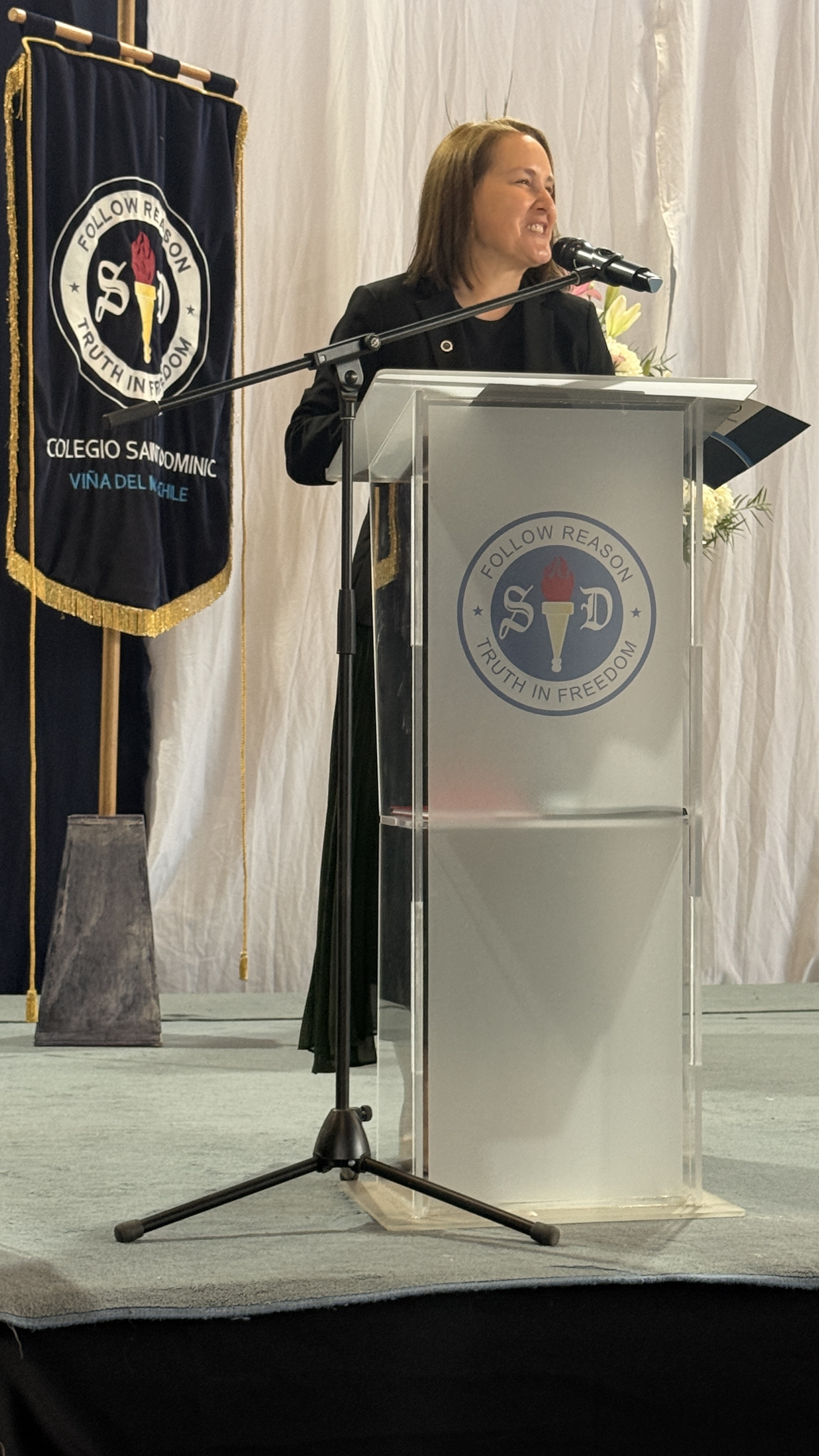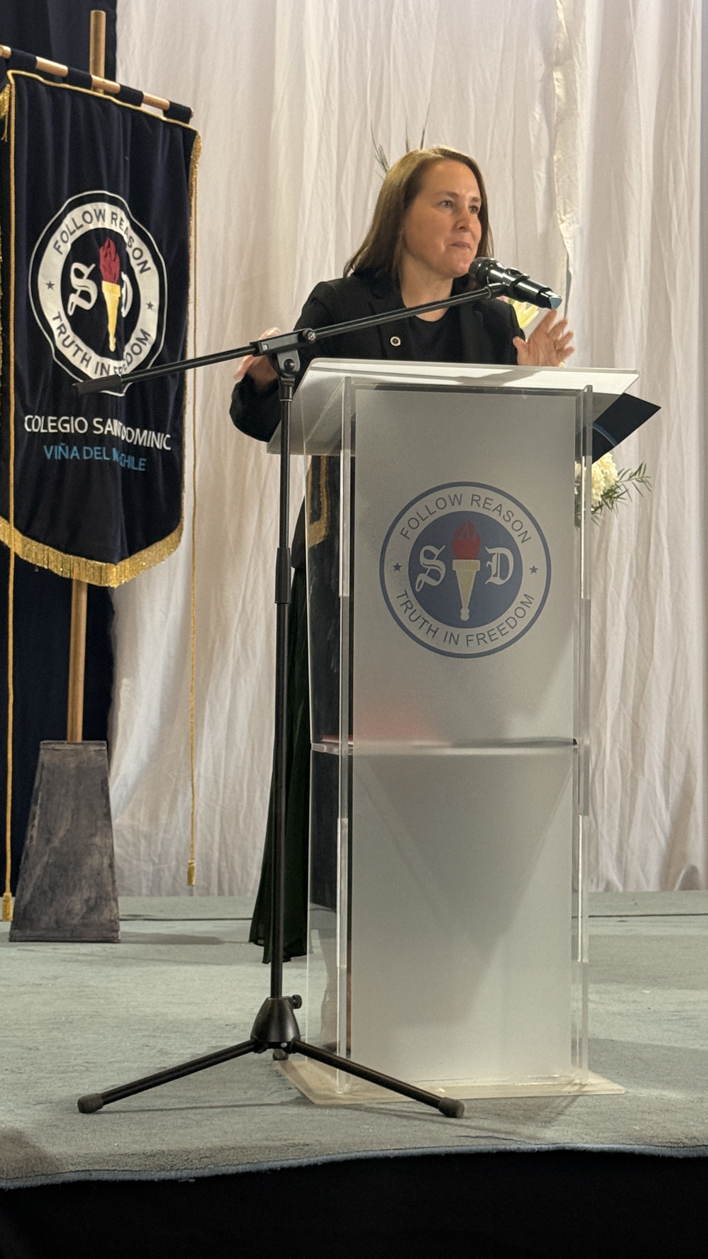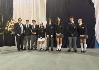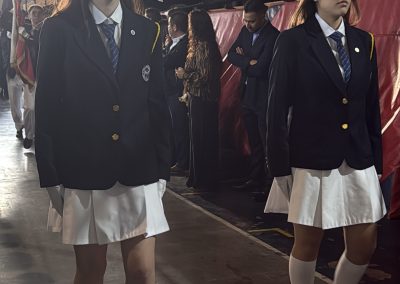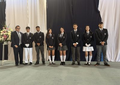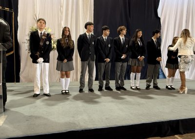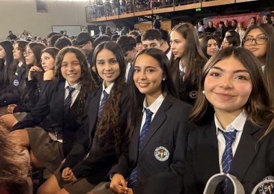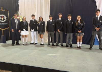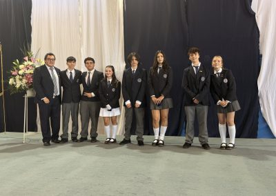 La rectora, Karen Mc Leod B., dirigió un mensaje especialmente dedicado a los estudiantes investidos, destacando el significado profundo de este último año escolar. Entre sus palabras, compartió: “Su investidura simboliza la confianza que esta comunidad deposita en ustedes. Este es el año en que se transforman en referentes visibles para todo el colegio. Asuman este camino con madurez y con la certeza de que el esfuerzo constante siempre abre oportunidades.”