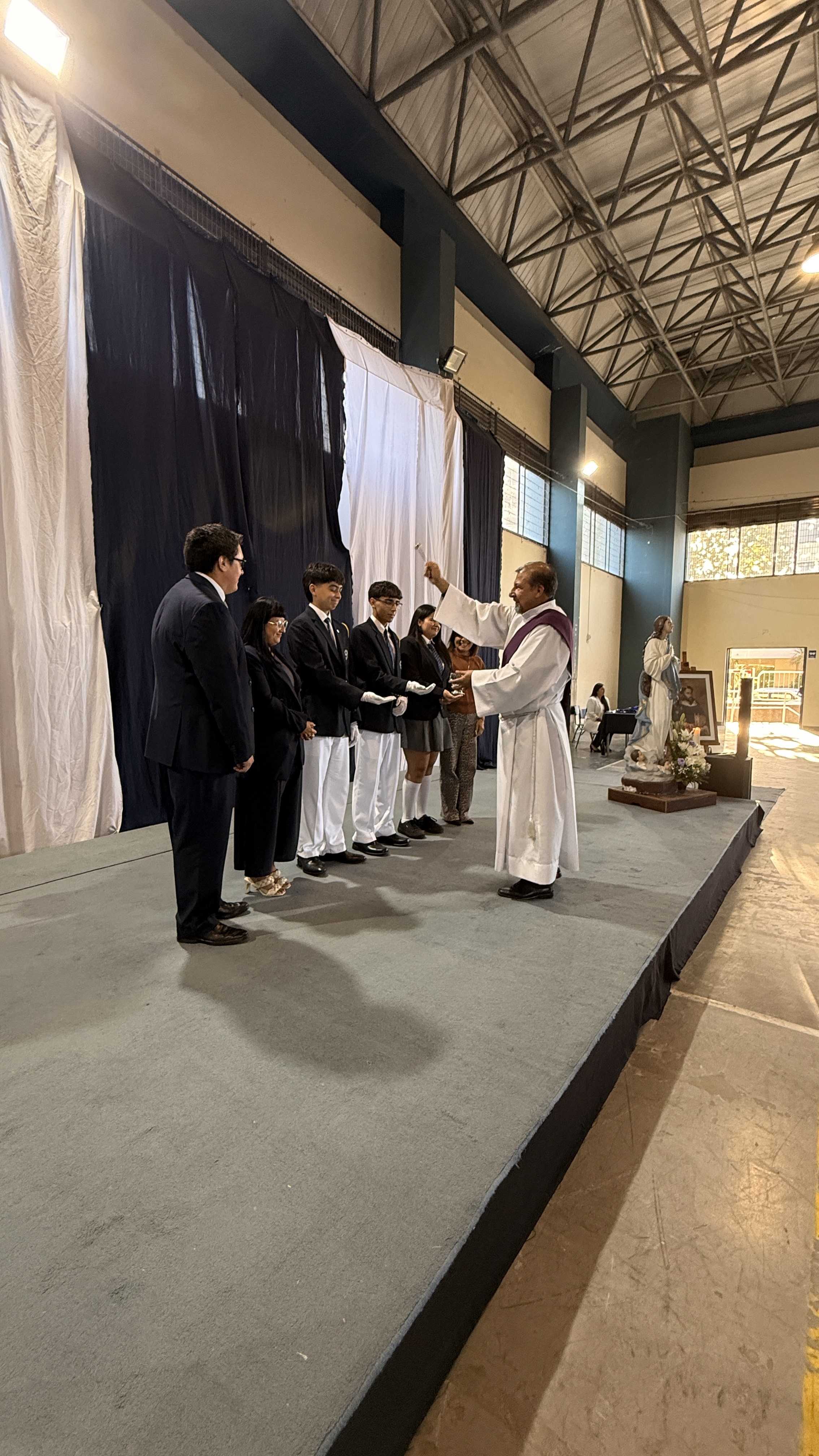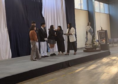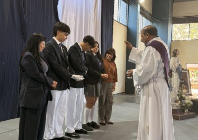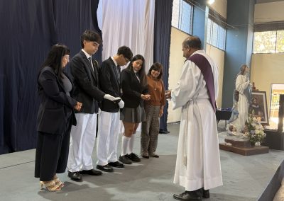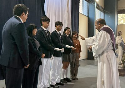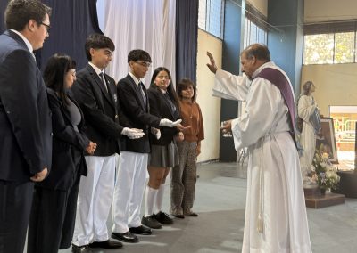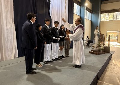 Durante la ceremonia también asumieron oficialmente los coordinadores de Pastoral 2026, quienes aceptaron este servicio como un compromiso de liderazgo y acompañamiento espiritual. Ellos son: María Javiera Ulloa Falcón – IV° A, Mateo Gallegos Monsalves – IV° C y Tomás Vera Espinoza – IV° C