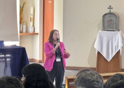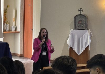 En primer lugar, la asamblea ofreció información general sobre la PAES, incluyendo detalles sobre las fechas de aplicación, los requisitos de inscripción, las pruebas que componen el examen, la escala de puntajes y otros aspectos técnicos. Miss McLeod también destacó que la Generación 2025 participará el 13 y 14 de marzo en el Primer Ensayo PAES, en el que rendirán las pruebas de Comprensión Lectora, Matemática 1-2, Biología, Física, Química e Historia y Geografía.