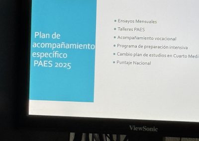 La charla también incluyó detalles sobre la programación del Colegio para el ciclo PAES 2025, que abarca diversas iniciativas de acompañamiento y preparación, tales como: