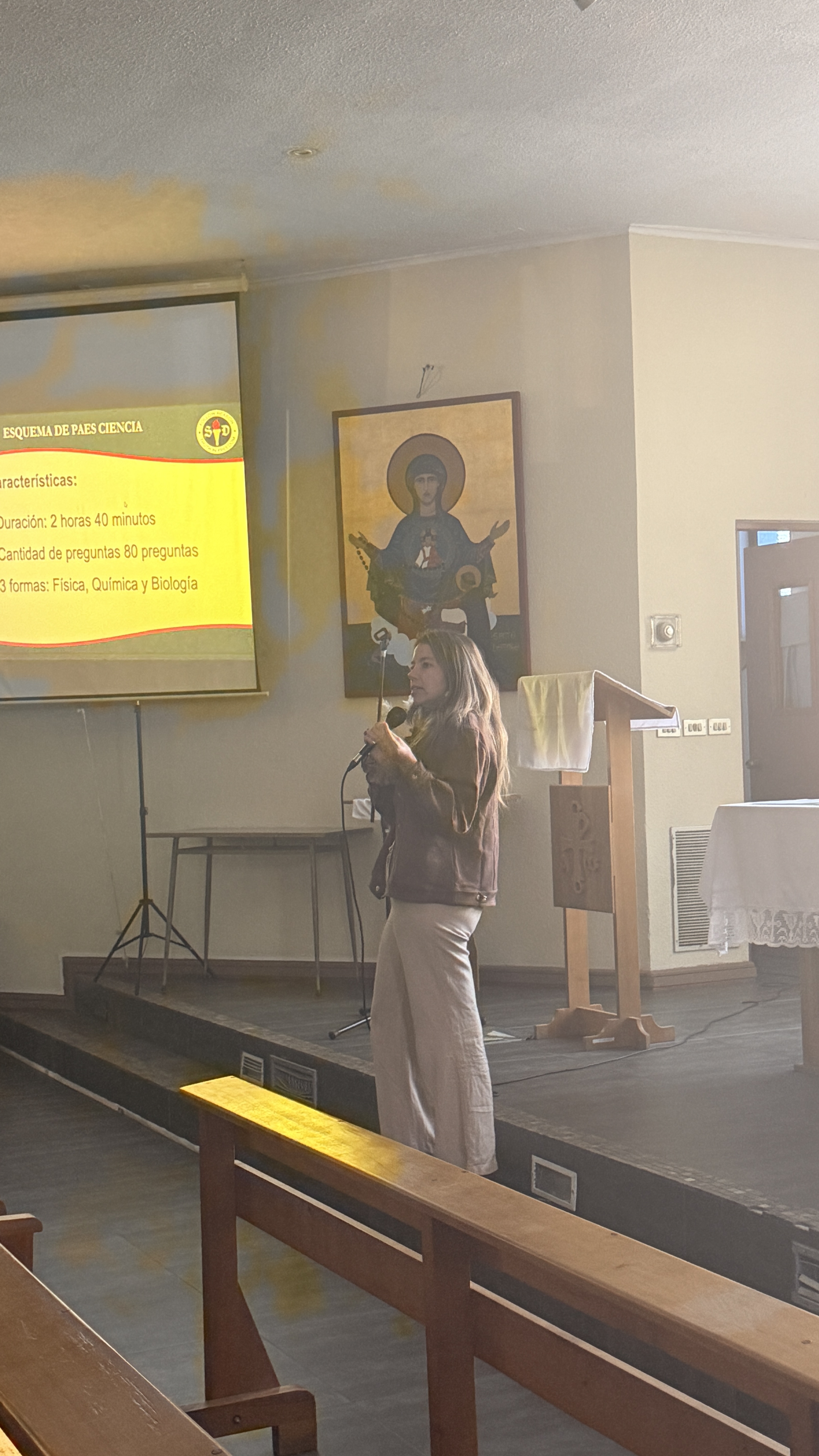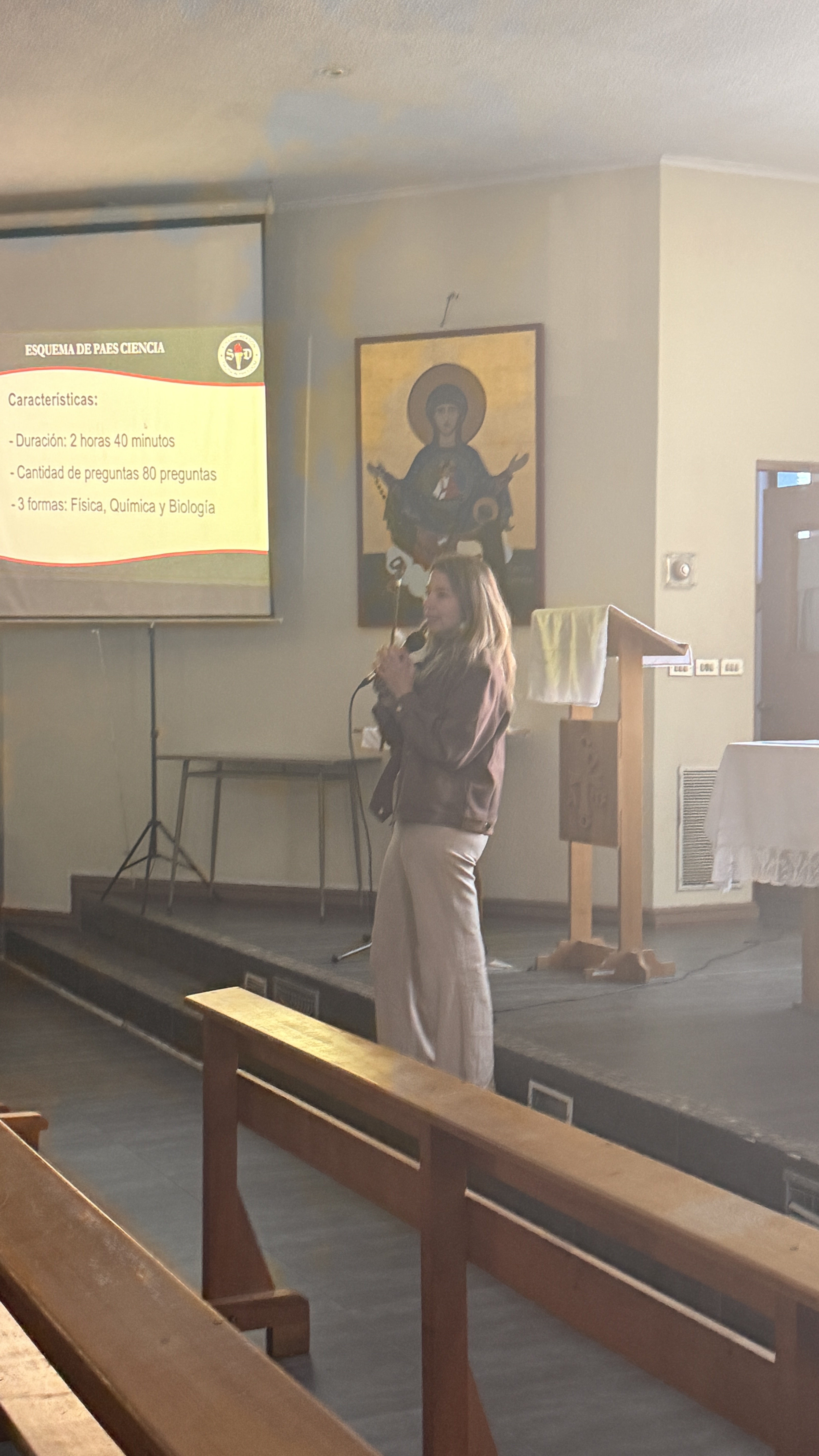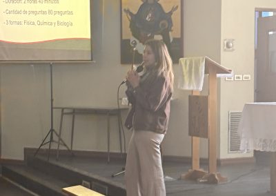 Durante la presentación, se abordaron aspectos generales de la PAES, como fechas, inscripción y estructura de la prueba. Además, se informó que el Primer Ensayo PAES se realizará el lunes 13 y martes 14 de abril, donde los estudiantes rendirán Comprensión Lectora, Matemática 1, Biología, Física, Química e Historia y Geografía, mismos días del segundo ensayo de los IV°s Medios.
