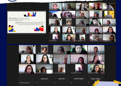 La charla, en la que participaron apoderados, directivos, docentes, inspectores y otros colaboradores del Colegio, se centró en la Convivencia Escolar Digital y contó con la excelente exposición de Madeleine San Juan López y Cecilia Rosales Campos, ambas investigadoras del Programa PACES de la PUCV.