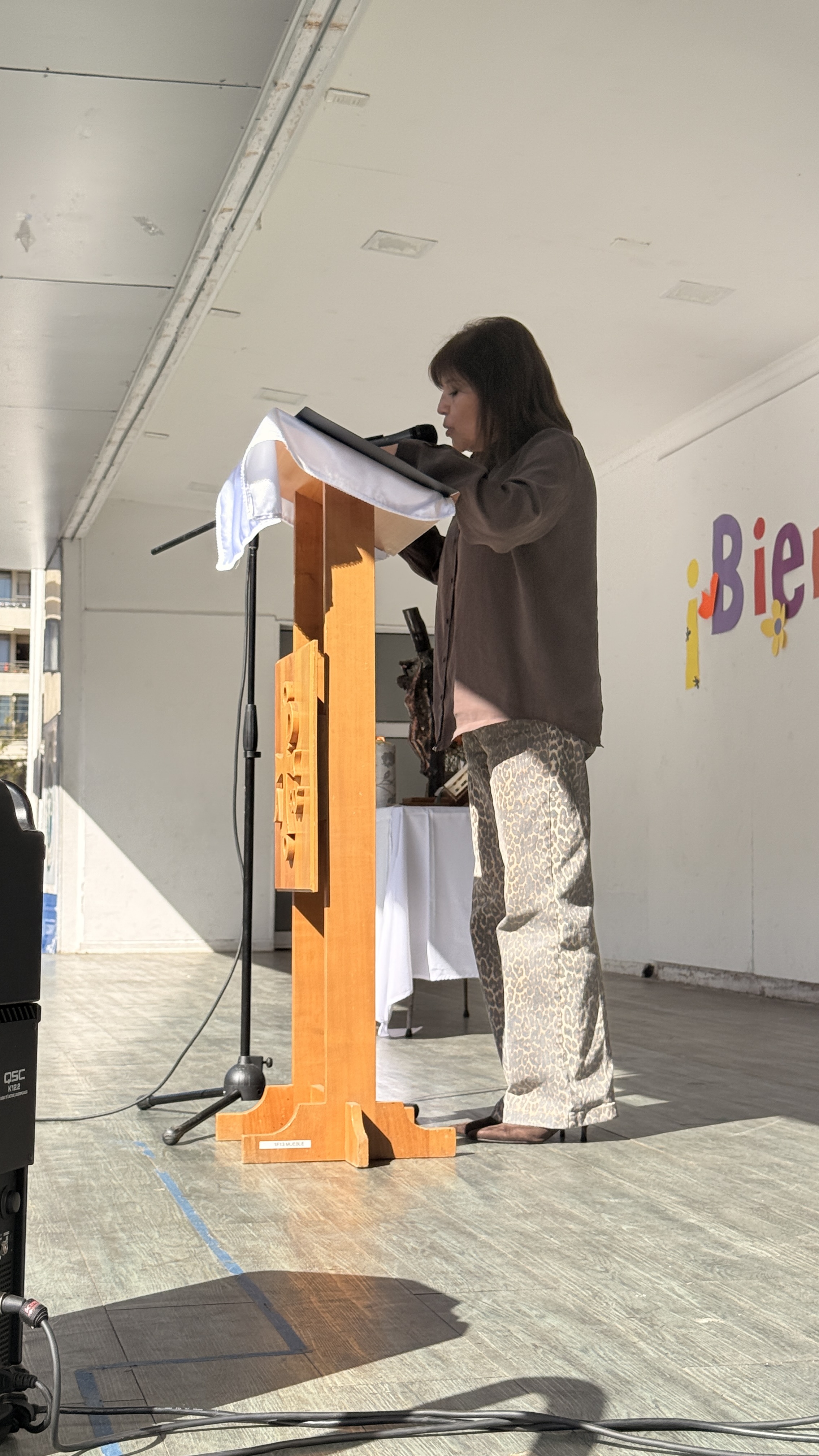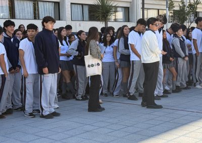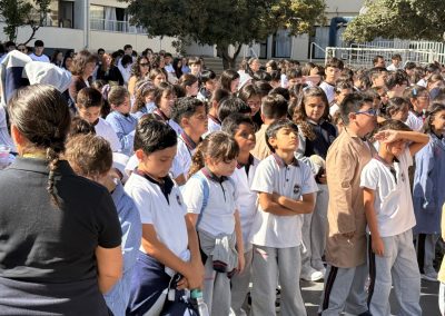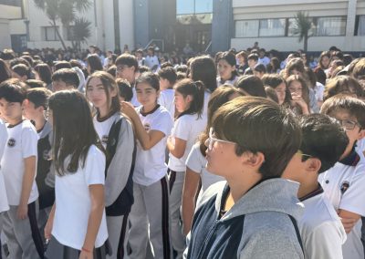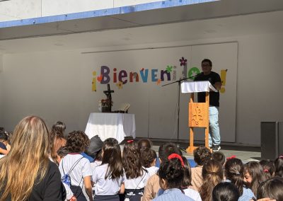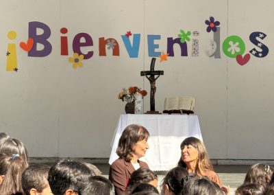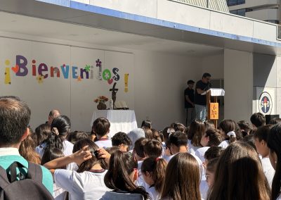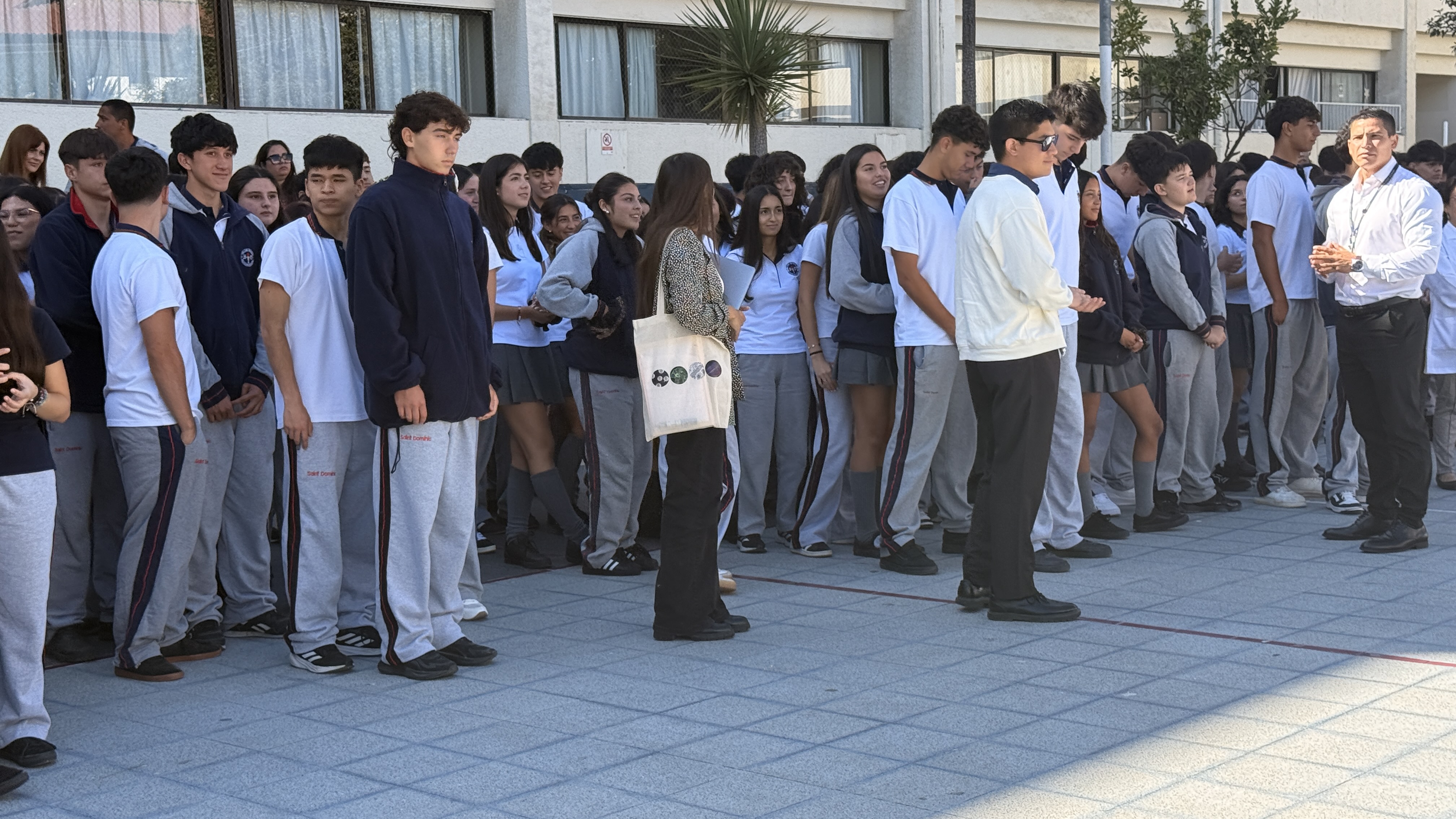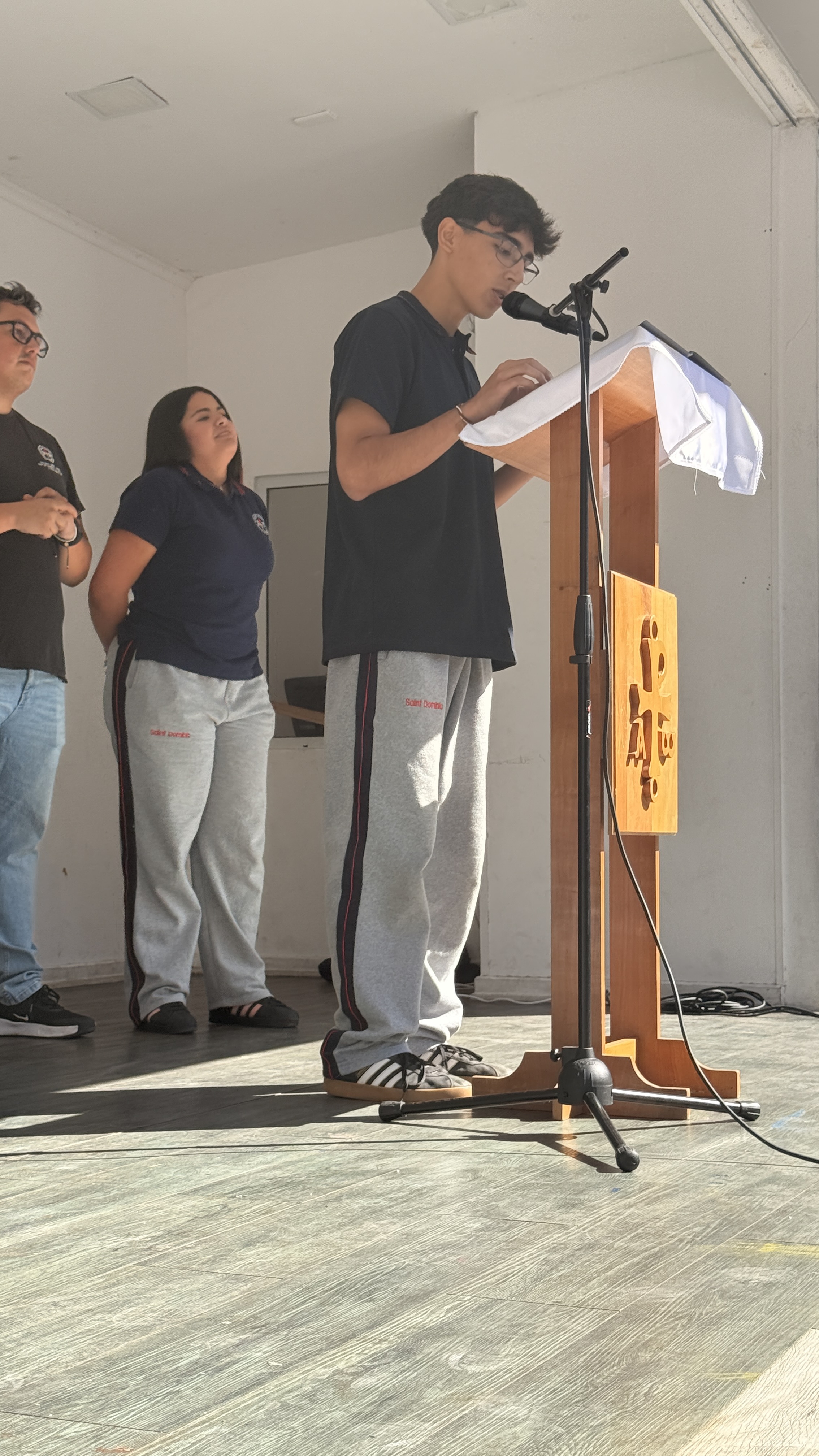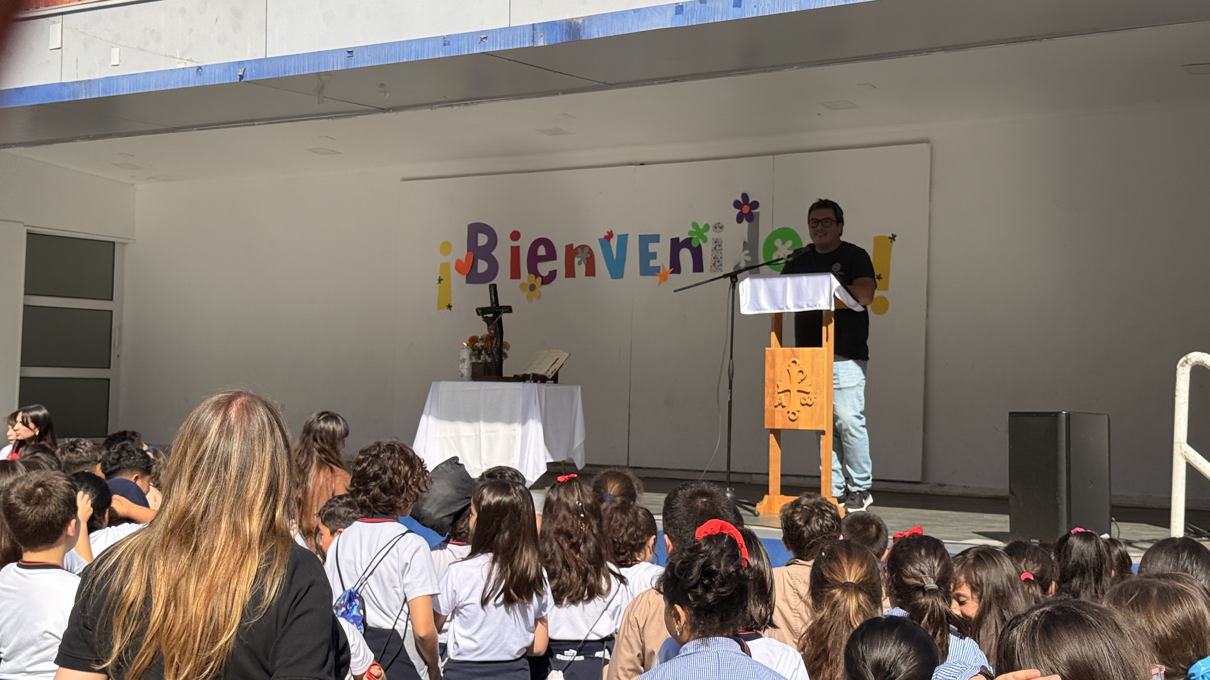 El encuentro inició con un momento de silencio y gratitud, destacando la fortaleza, ternura y presencia transformadora de las mujeres en la vida cotidiana. Posteriormente, estudiantes de Cuarto Medio, Mateo Gallegos y Javiera Ulloa, guiaron las oraciones, invitando a la comunidad a reconocer el aporte de las mujeres en la construcción de esperanza, respeto y fraternidad.