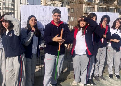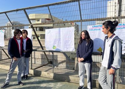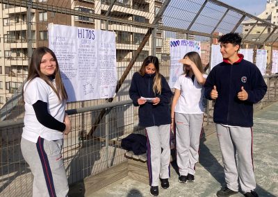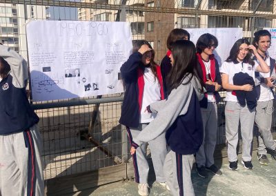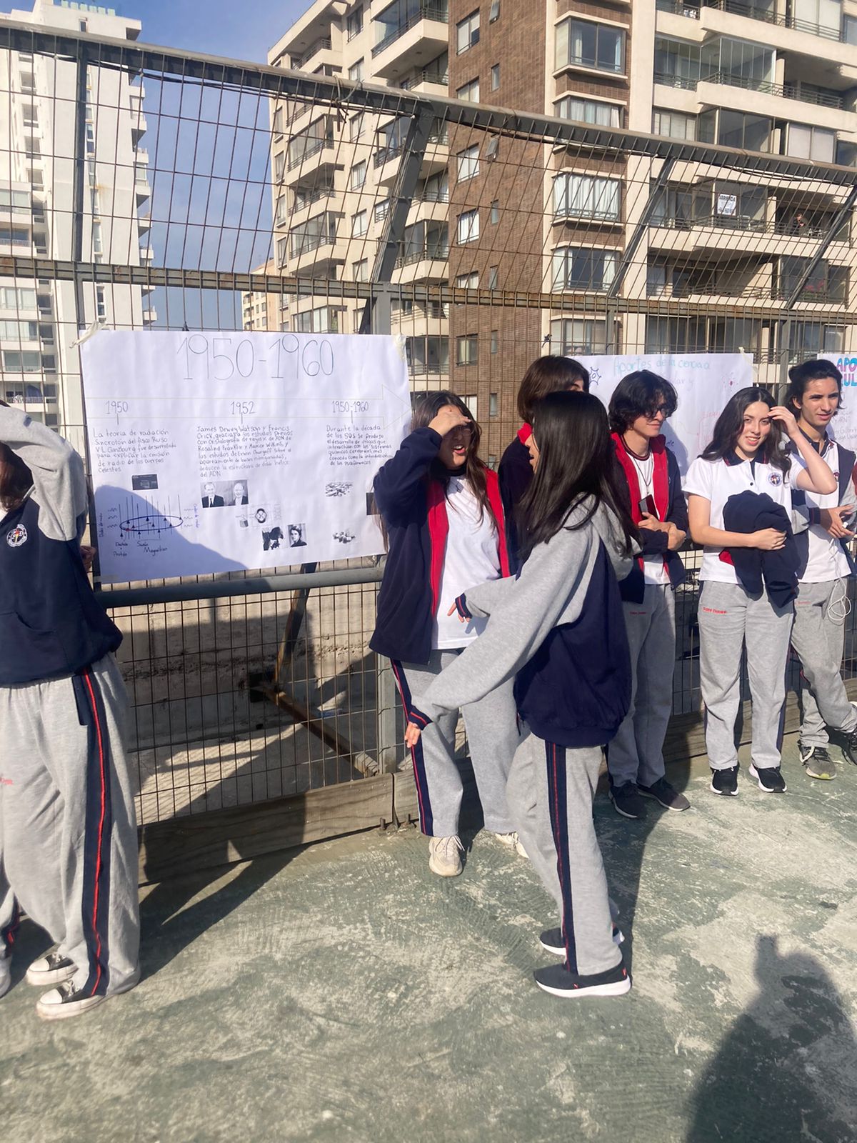 Los estudiantes debieron exponer en el patio a otros compañeros, desarrollando la oralidad en la asignatura.