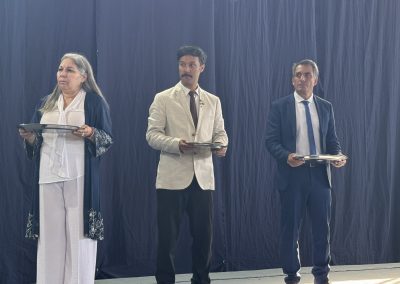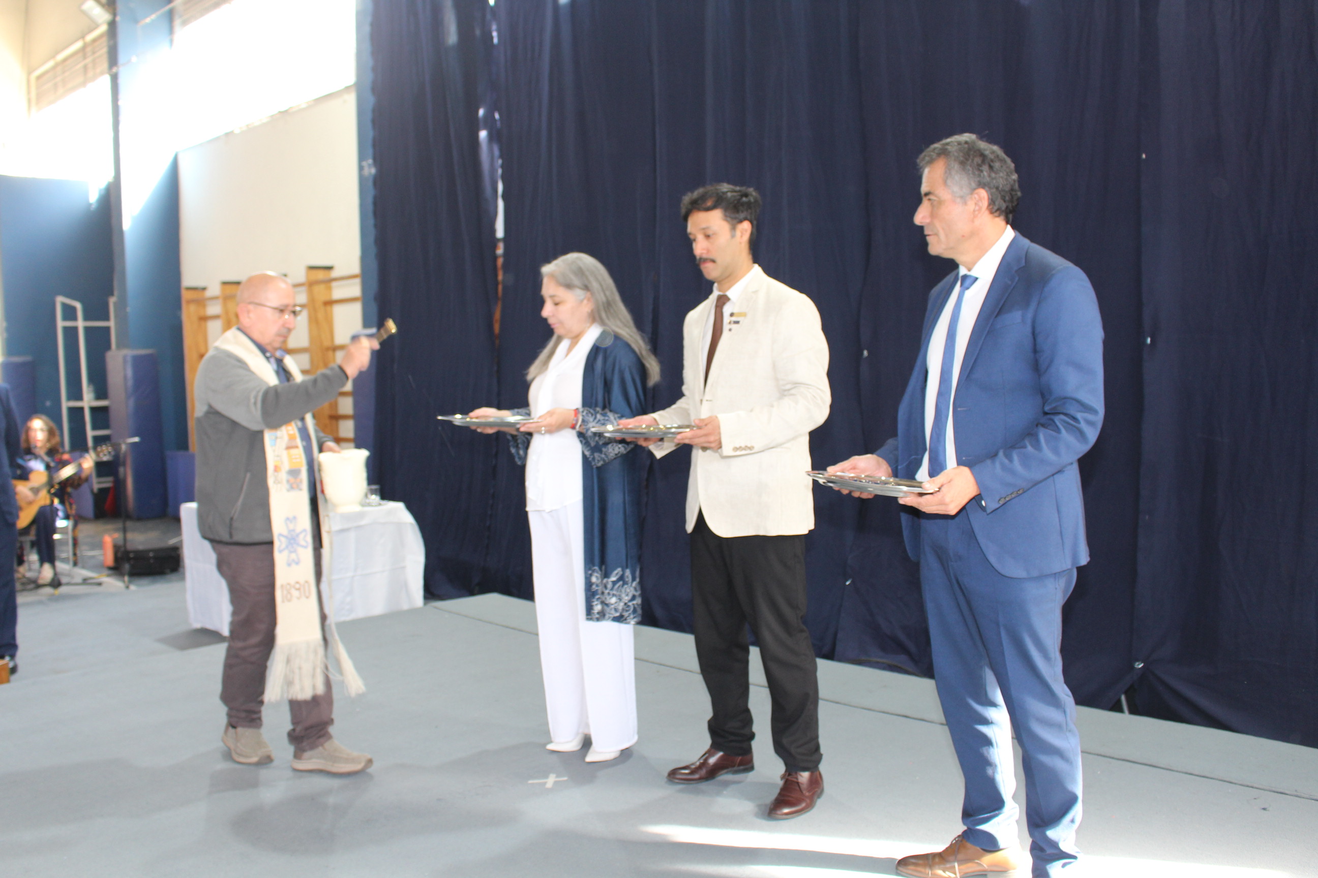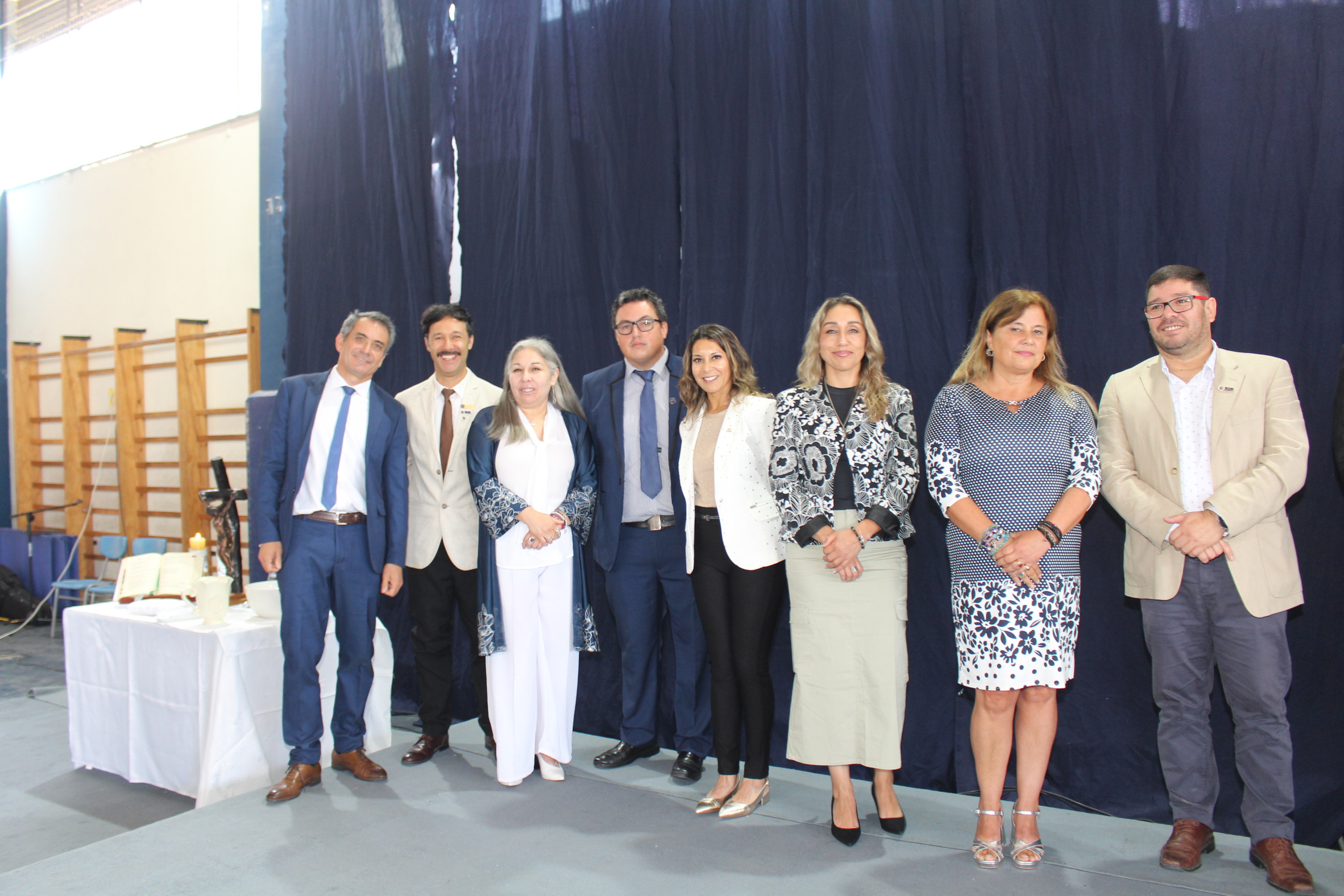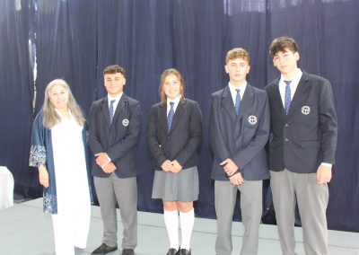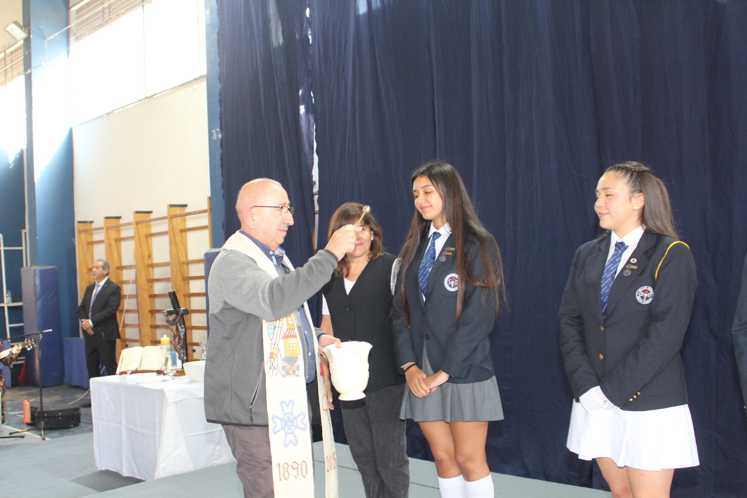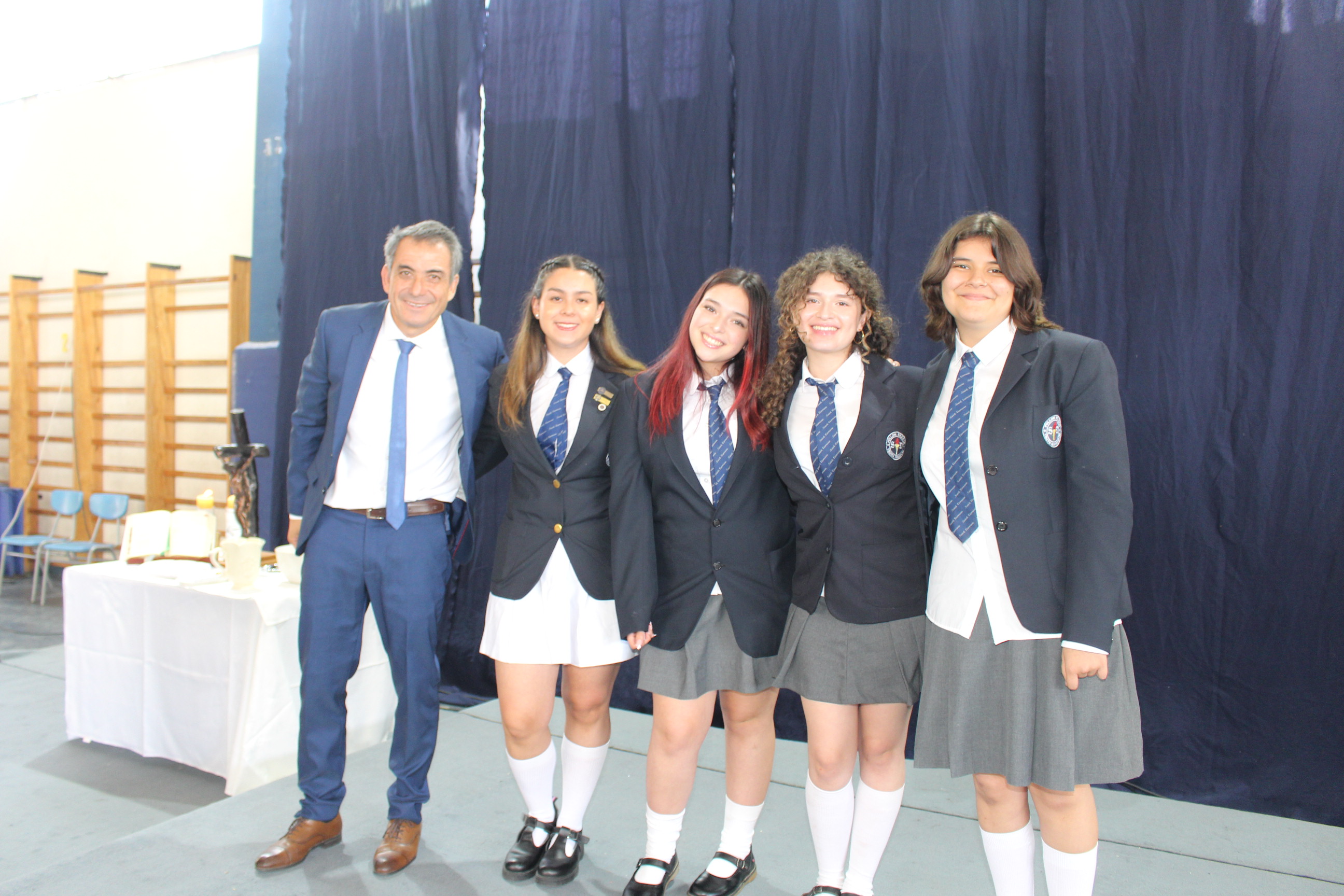 La ceremonia también tuvo un componente espiritual muy significativo, donde los asistentes recibieron la bendición del Padre Esteban Monsalves, quien acompañó el momento con palabras de esperanza y reflexión. Asimismo, se presentó y bendijo a las coordinadoras de pastoral 2025, Antonia Arcaya y Victoria Zárate del IV° A, así como a Agatha Kramer y Sofía Rodríguez del IV° B, quienes guiarán el camino espiritual de nuestros estudiantes este año. También se realizó la bendición a los profesores tutores del ciclo.