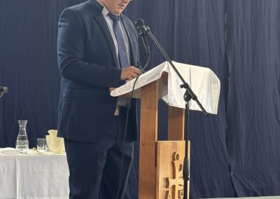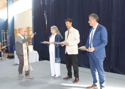 En este evento, nuestro Rector, Sr. Patricio Galleguillos, ofreció un mensaje reflexivo sobre el tiempo y el crecimiento. Destacó lo rápido que pasa y cómo, a lo largo de estos años, nuestros cuartinos han formado su camino hacia el futuro. El rector invitó a los estudiantes a agradecer a quienes los han acompañado en este proceso, a centrarse en el futuro que están construyendo, y a valorar sus talentos. Citó un pensamiento de Miguel de Cervantes en Don Quijote: «Todas las cosas que tienen dificultad te parecen imposibles. Confía en el tiempo, que suele dar dulces salidas a muchas amargas dificultades». Además, los animó a dar lo mejor de sí mismos durante este año escolar, pero sobre todo, a disfrutarlo.