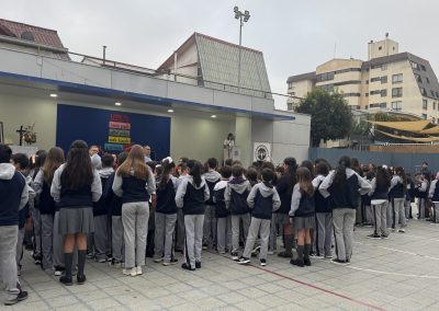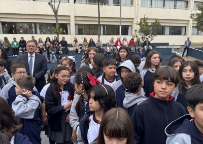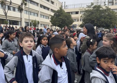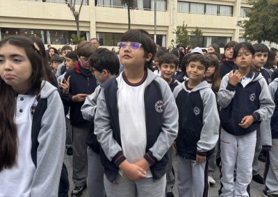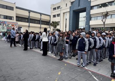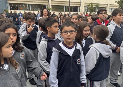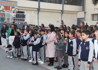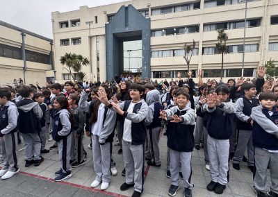 El día 6 de marzo continuamos con el ingreso de los ciclos Inicial y Básico. Ver las caras emocionadas de nuestros estudiantes al regresar a las aulas nos llenó de felicidad. Todos los alumnos de 3° a 6° básico se reunieron en el patio y brindaron una cordial bienvenida a los nuevos estudiantes, participando en una actividad con un programa muy similar al del día anterior.