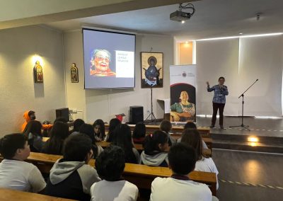 La actividad correspondió a una mediación cultural, durante la cual se desarrolló una breve clase sobre mitos y leyendas de Chile, junto con la realización de juegos mapuches y un test online, donde participaron los estudiantes. De esta forma nuestros amigos del Fondo, dan un paso más en la transferencia de saberes de cultura tradicional, objetivo central de esta organización.