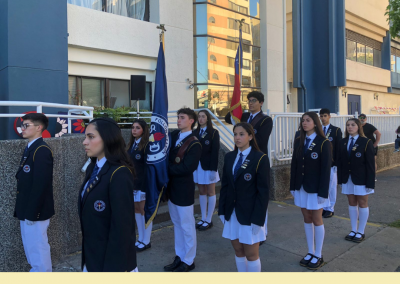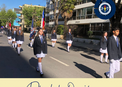 Como ya es tradicional, nuestro establecimiento fue invitado a participar en la procesión, ocasión en la que fuimos representados por nuestros estandartes y sus escoltas de cuarto medio, encabezados por el Brigadier Mayor, Sr. Ignacio Horzella Sturla, quienes acompañaron a las delegaciones invitadas en todo el trayecto efectuando los honores y saludos programados, a la imagen de nuestra Reina y Madre.