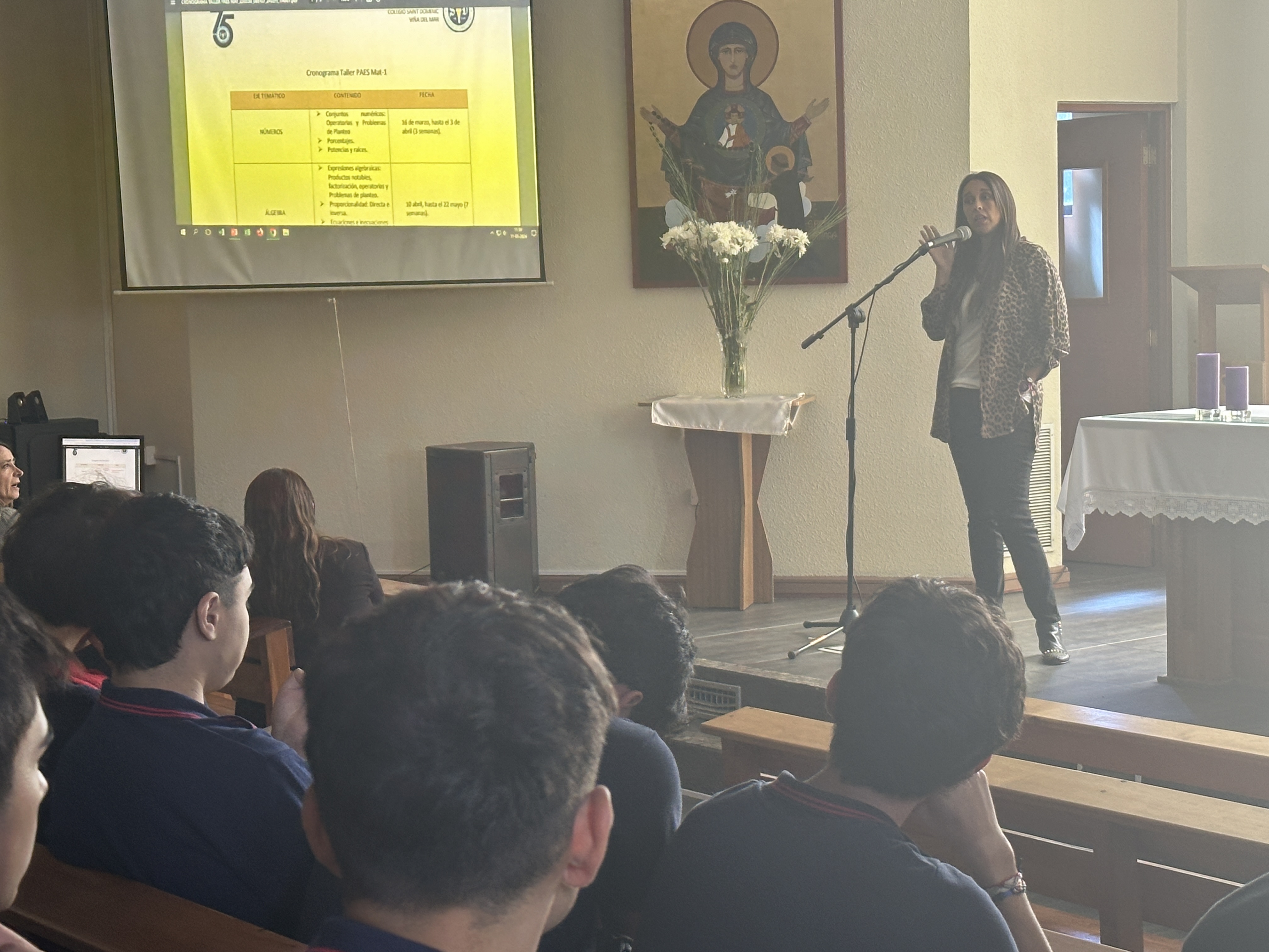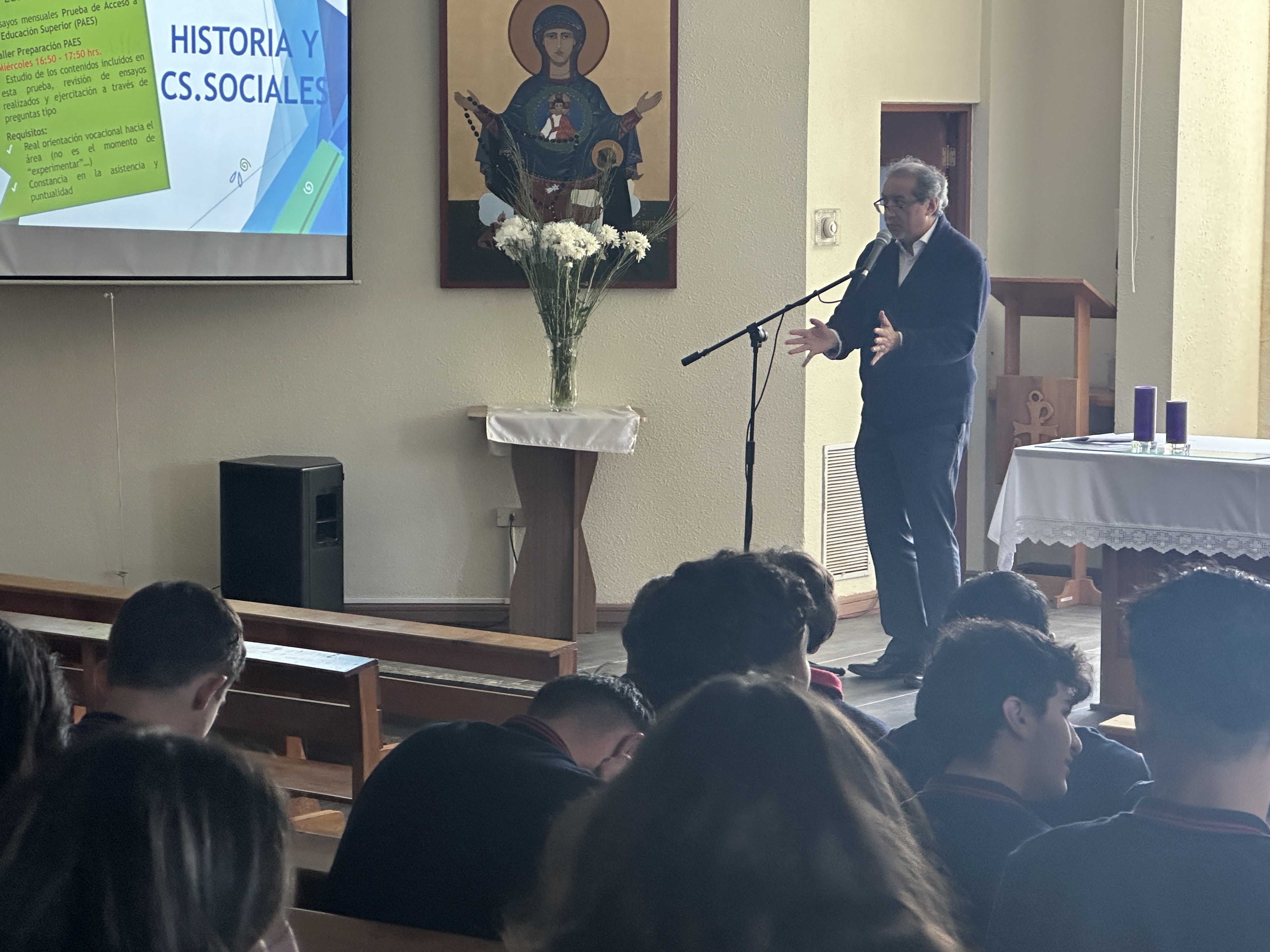 El encuentro tuvo como principal objetivo dar a conocer las actividades para este año en lo académico, concerniente a la PAES 2023, que contempla los Ensayos Mensuales, Talleres PAES, el Acompañamiento, el uso de la plataforma Puntaje Nacional más otros recursos y el aspecto vocacional, que fue expuesto por Miss Carla Traverso, directora del Área Psicoeducativa. Términos e información que estos jóvenes reciben cómodamente ya que vienen recibiendo desde segundo medio, año en que de a poco se va exponiendo al alumnado a la preparación para enfrentar el proceso de selección universitaria.