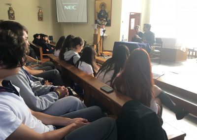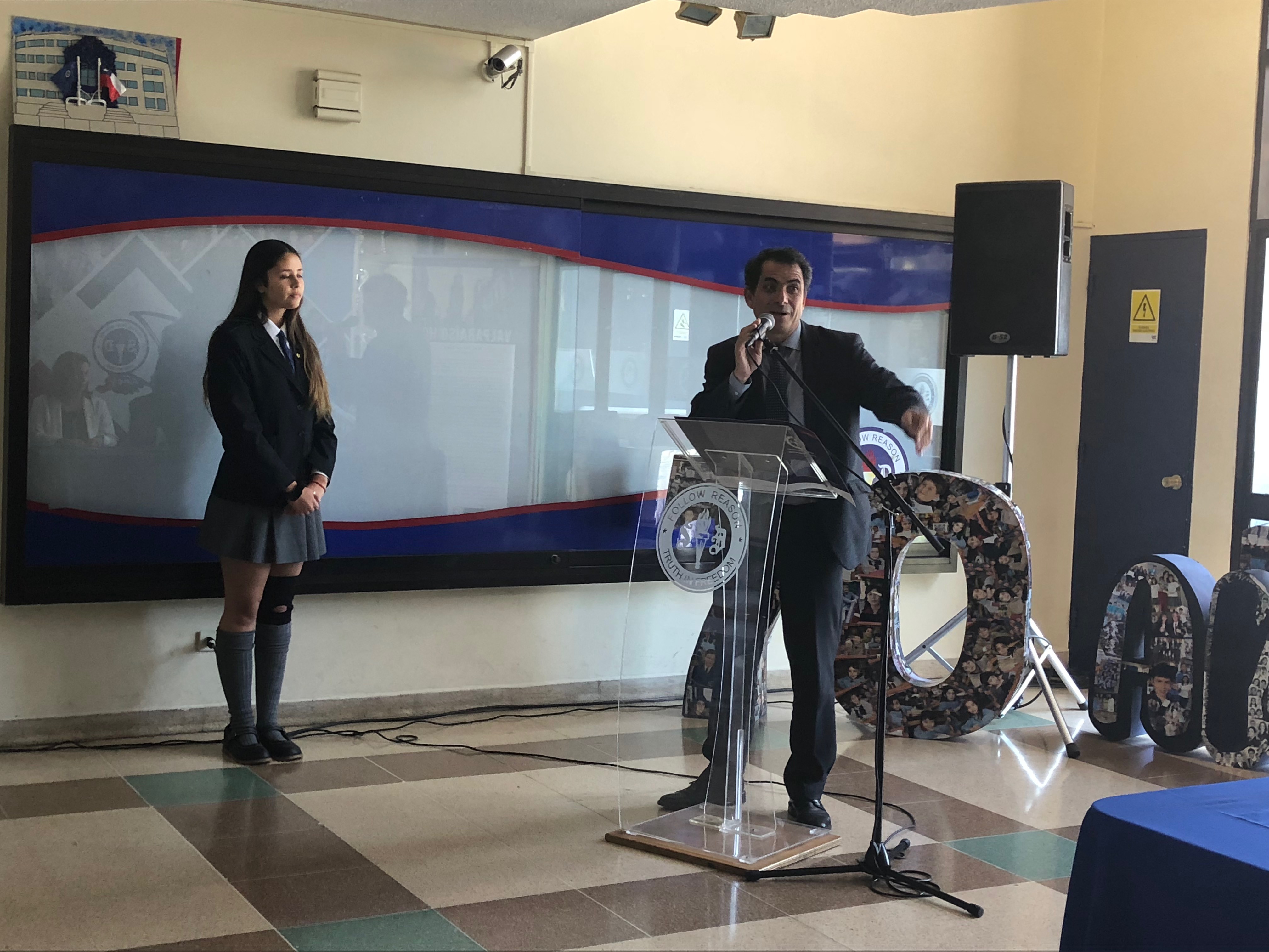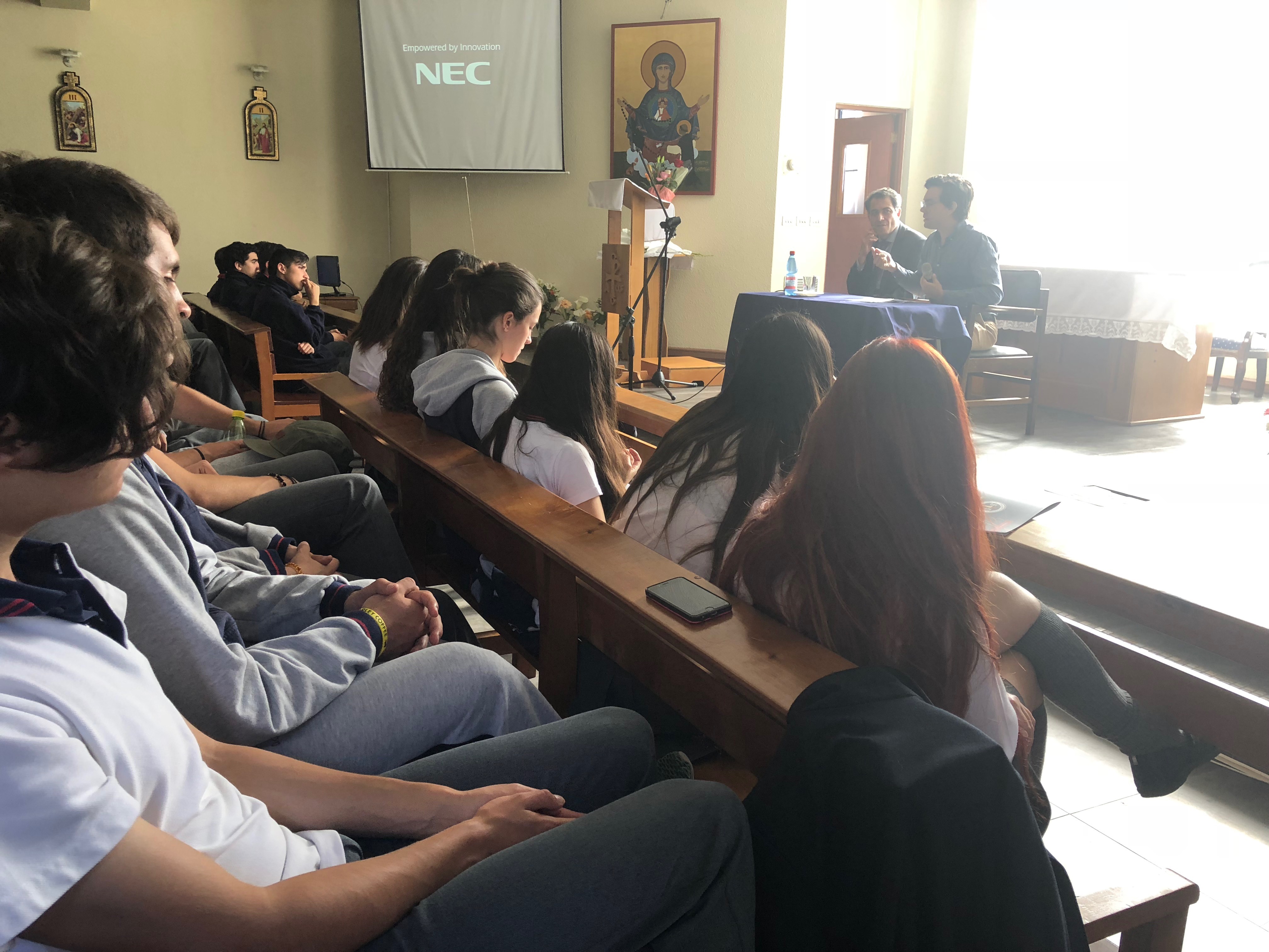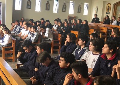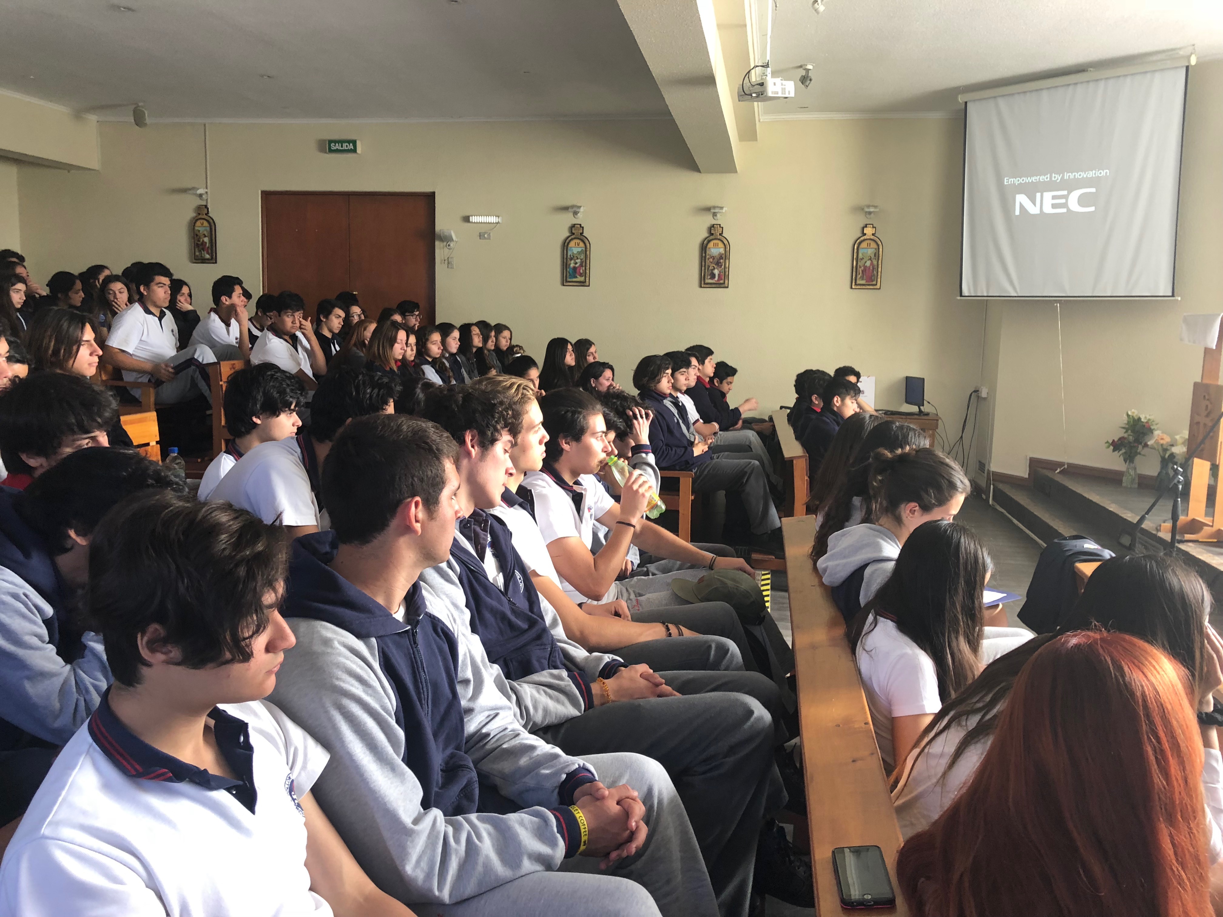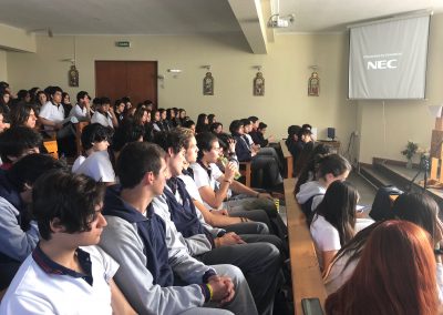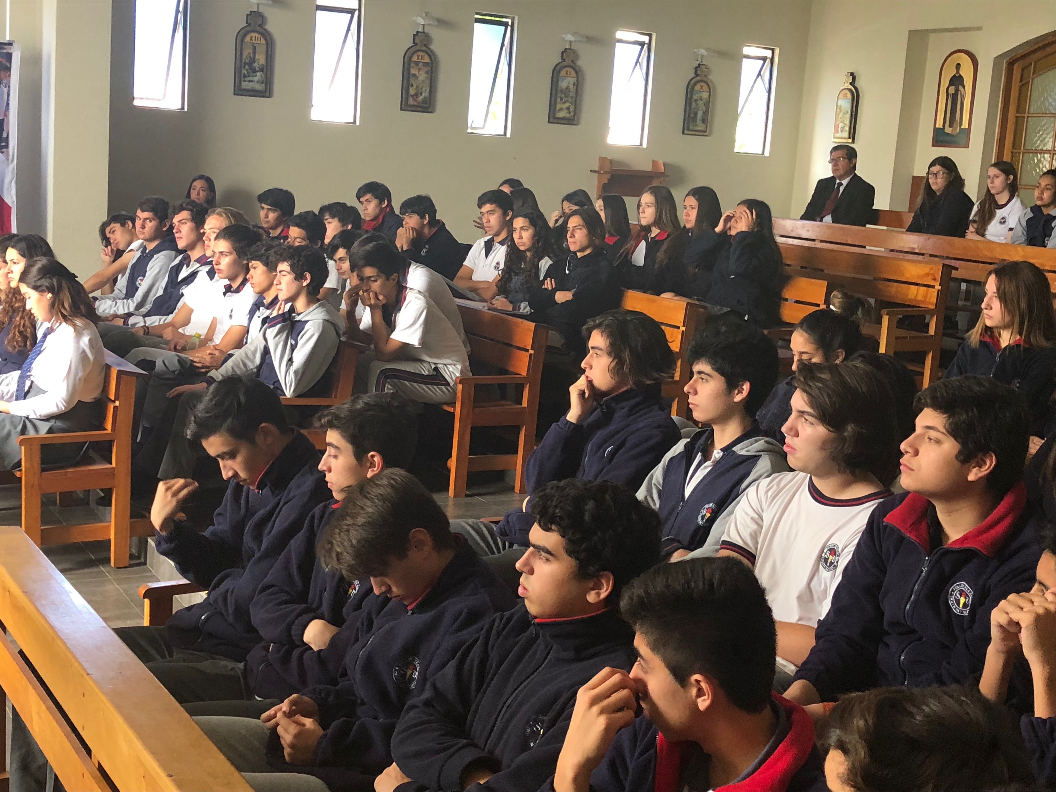 En primer lugar, y en el marco de nuestro convenio marco con la Universidad Adolfo Ibáñez, los alumnos de enseñanza media tuvieron el agrado de asistir a la Charla: » Vida Política y el Legado del Mundo Clásico», la que estuvo a cargo del Profesor de la Universidad Adolfo Ibáñez  José Antonio Valdivia, Magister Universidad de la Sorbbone. París y actual candidato al grado de Doctor. La actividad realizada en la Capilla de nuestro colegio fue el escenario perfecto para que los alumnos entendieran varios aspectos de la política contemporánea, además participaron activamente con el profesional que les dio respuesta a todas las inquietudes planteadas, incluso las de índole más filosóficas.