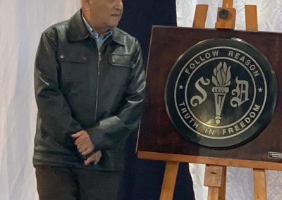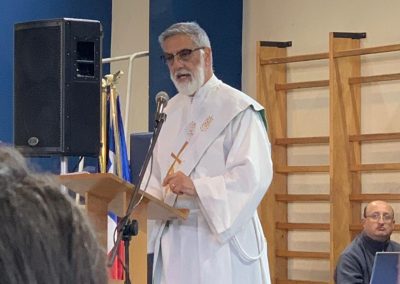 Para continuar con la ceremonia el Diácono Sr. Jorge Leng, compartió una lectura y otorgó la bendición a los participantes, cumpliendo con la inspiración católica que orienta a nuestro colegio, y al ejemplo de fe y de entrega hacia los demás de Santo Domingo de Guzmán, Patrono del colegio y modelo de vida para nuestros alumnos, a quien también se homenajeaba en el evento de aniversario.
