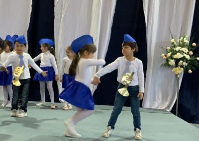 Luego de la emoción vivida en este especial momento, los alumnos del Kinder A presentaron una coreografía, dirigido por la educadora Angélica Fuster y su asistente Silvia Cortés, al son de la canción Boogie Woogie, popularizado por The Andrew Sisters.