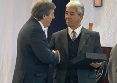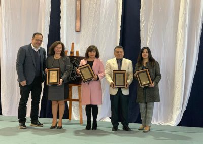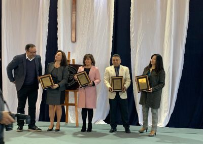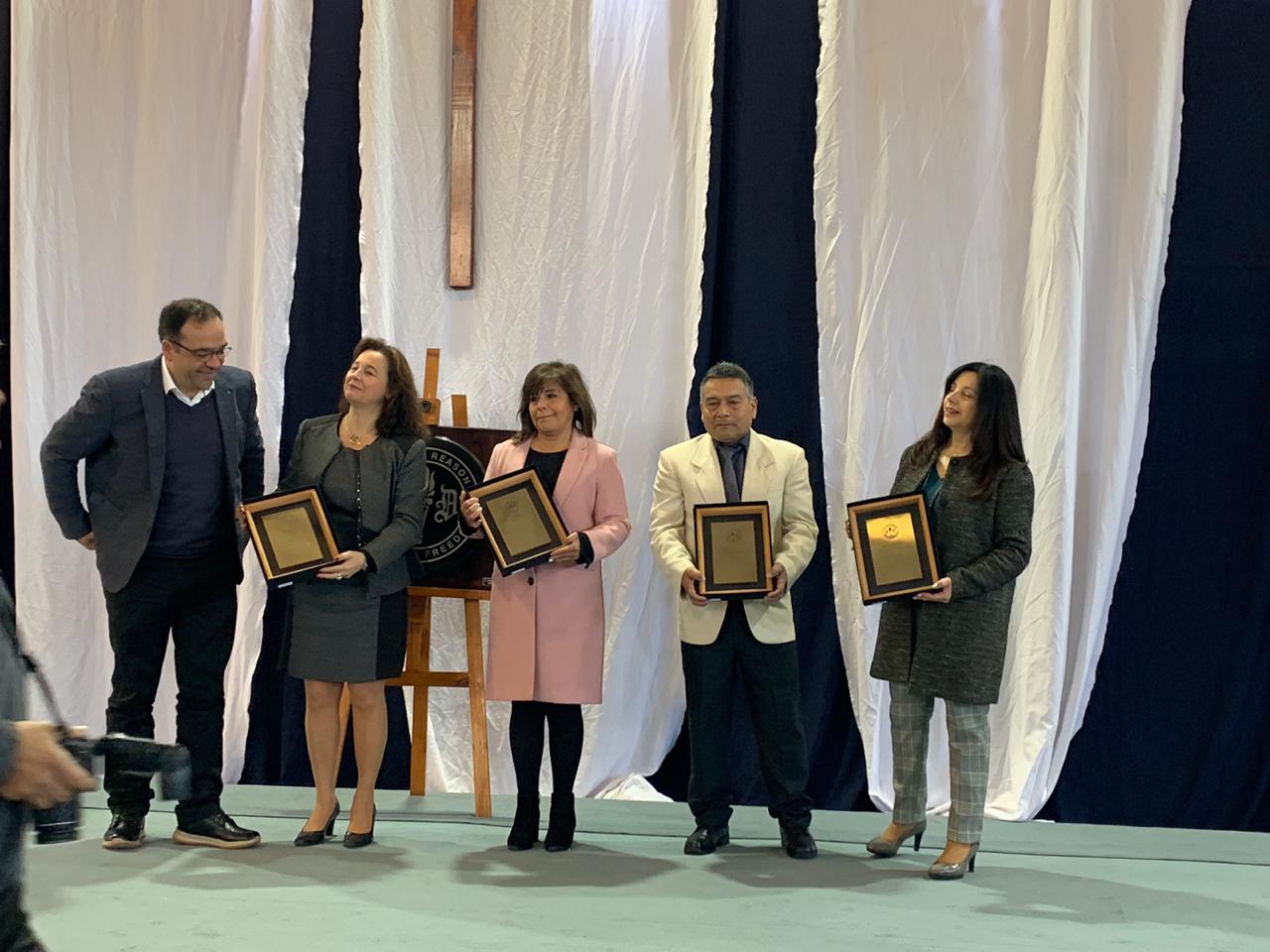 Los reconocidos fueron con Ana Castillo Silva, asistente de párvulos; Arnaldo Rojas Vitalich, docente de Matemática; María Luisa Torres Borge, inspectora; y Francisco Robles Lagos, Inspector, por 10 Años de Servicio. Homenaje entregado por David Carmona, Director de Finanzas de la Corporación Docente Saint Dominic.