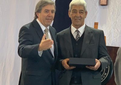 Finalmente el reconocimiento por 40 años de servicio fue entregado a Mauricio Araya Jofré, encargado de apuntes, quien recibió de manos del Presidente de la Corporación Docente Saint Dominic, Patricio Galleguillos Herrera, su galardón y el cariño de toda nuestra comunidad educativa en un fraternal abrazo.