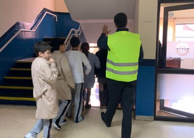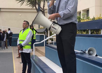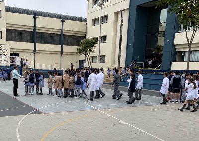 Esta acción está contemplada dentro del plan integral de evacuación y seguridad escolar (PISE) y consiste en que todos se trasladen desde sus aulas u oficinas a los puntos de encuentro establecidos, en el menor tiempo posible, ya que esto se efectuará en caso de una emergencia.