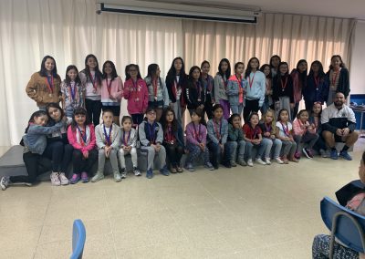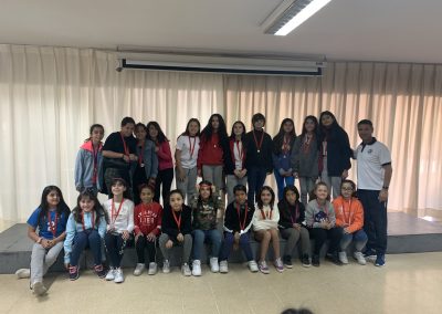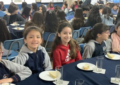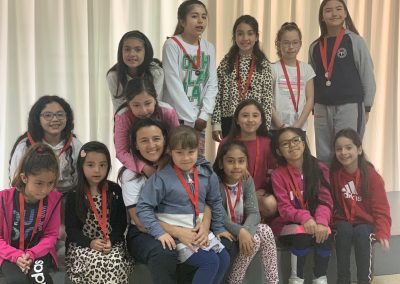 Los alumnos de primero a sexto básico también tuvieron su “momento de gloria”, el que disfrutaron también junto a sus profesores de selección y la rectora el día martes 26 de noviembre. Los alrededor de casi 170 alumnos y alumnas, repitieron el programa del desayuno de media, siendo homenajeadas como deportistas externas las alumnas RENATA RAMIREZ por su participación en patinaje artístico y AMANDA DEPAUX por gimnasia rítmica. La destacada nacional del ciclo fue Fernanda Meneses también de gimnasia rítmica.