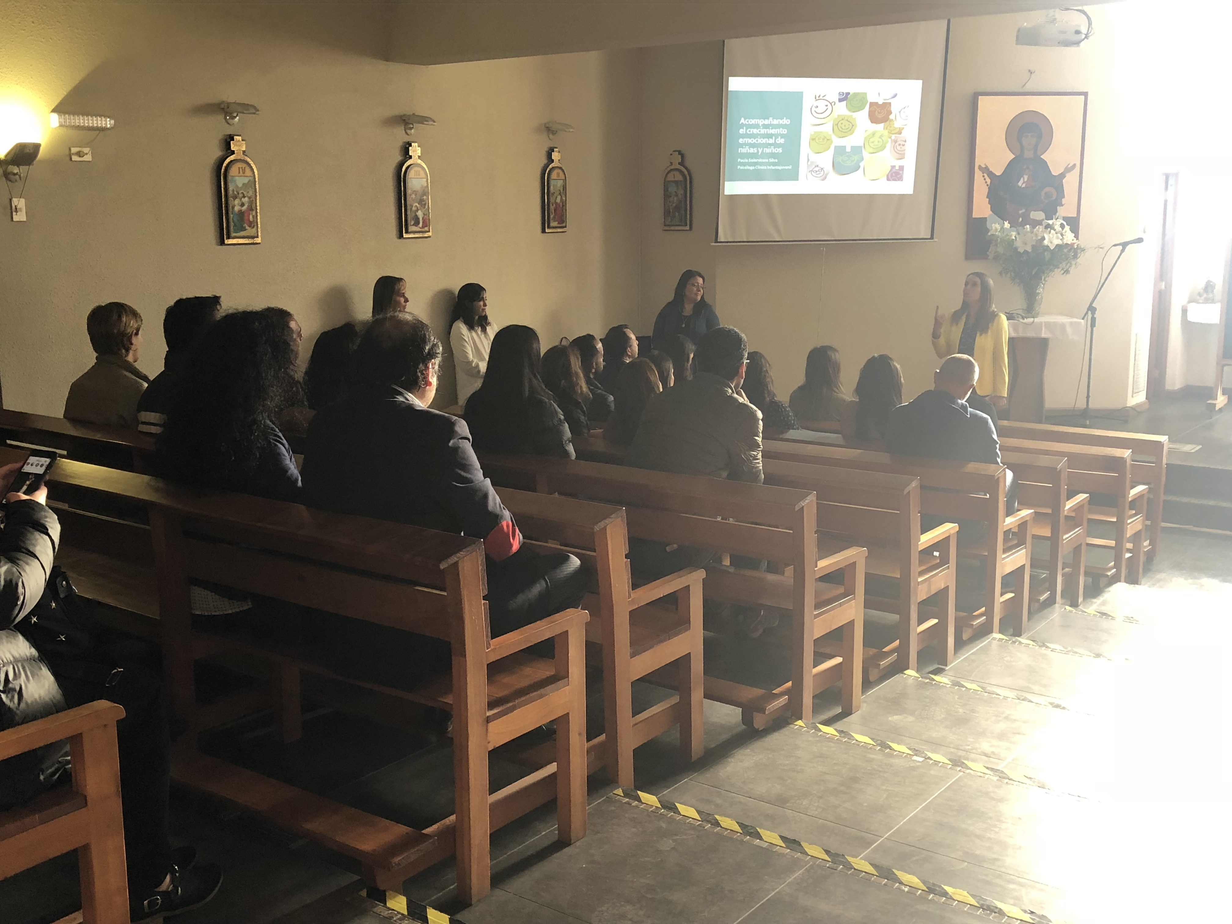 La actividad, organizada por el Equipo del Área Psicoeducativa, contempló dos encuentros con la Sra. Paula Solvevicens, Psicóloga y Licenciada en Psicología de la Universidad de Valparaíso y Master en Clínica y Salud Mental, de la Universidad de León, España. Su línea de Investigación actual, focalizada en el área de apego, infancia y adolescencia fue un gran aporte para los asistentes quienes junto a escuchar atentamente, participaron con comentarios y aportes de sus propias experiencias, enriqueciendo los encuentros.