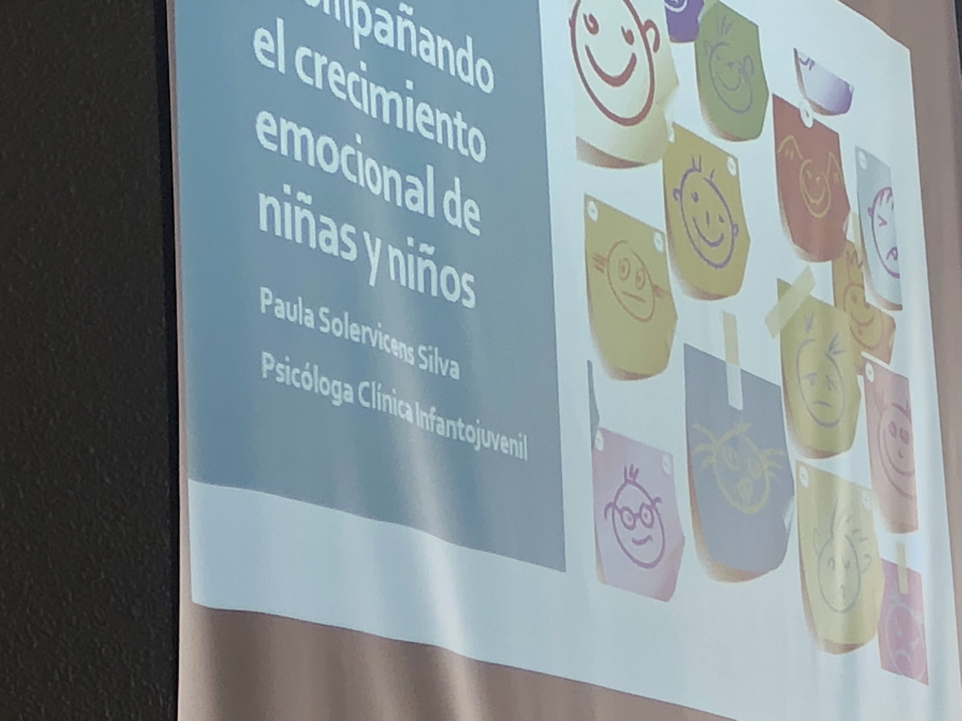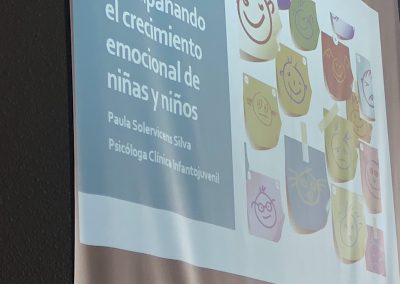 El 26 de octubre se realizó la primera parte de este ciclo, con el desarrollo del tema Acompañando el crecimiento emocional de las niñas y niños. Para Carla Traverso, directora del Equipo la elección de este tema tuvo como objetivo “Mostrar las etapas de desarrollo emocional, lo que no deja de ser importante, ya que con esto, los padres y apoderados puedan comprender qué pueden o no hacer los niños/as respecto de manejo de emociones y autocontrol” indicó la directora. Asimismo señaló “la exposición de Paula Solvevicens nos permitió construir junto con los participantes la importancia del rol del adulto que acompaña el desarrollo emocional”.