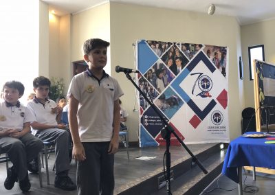 La actividad estuvo marcada por una alta expectación, tanto entre los asistentes como los mismos participantes que se iban sorprendiendo con sus capacidades. Asimismo, el departamento de inglés, representado por coordinador Juan Daniel Barra, quedaron gratamente sorprendidos con el nivel, especialmente de los jóvenes que lograron entrar a las rondas finales. “Fue una excelente experiencia para estimular el trabajo individual y la sana competencia con otros alumnos, la que esperamos extender el 2019 a estudiantes de otros colegios y así desarrollar la primera versión interescolar, organizada por un colegio en la ciudad.”, indicó el Profesor Juan Daniel.