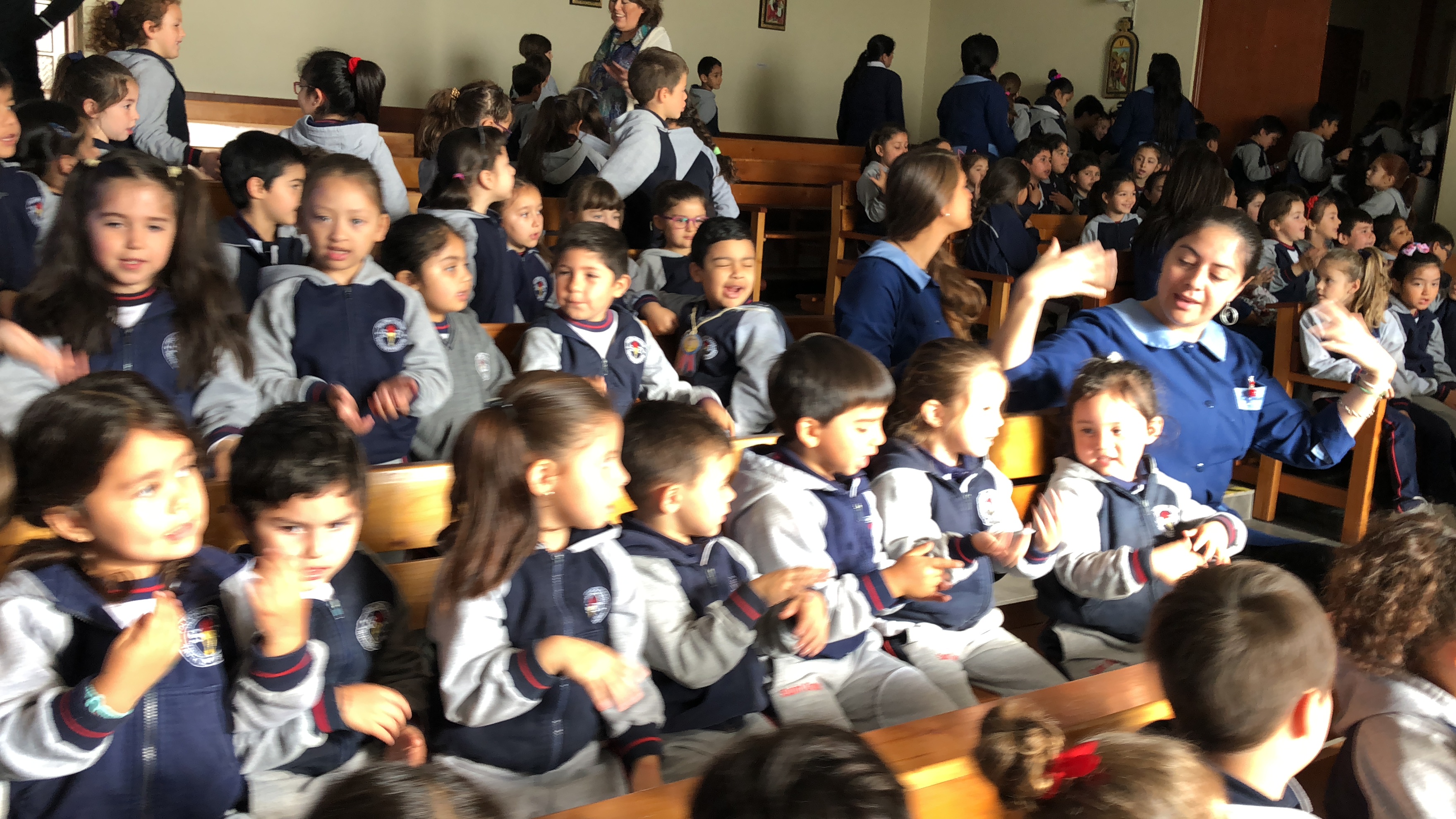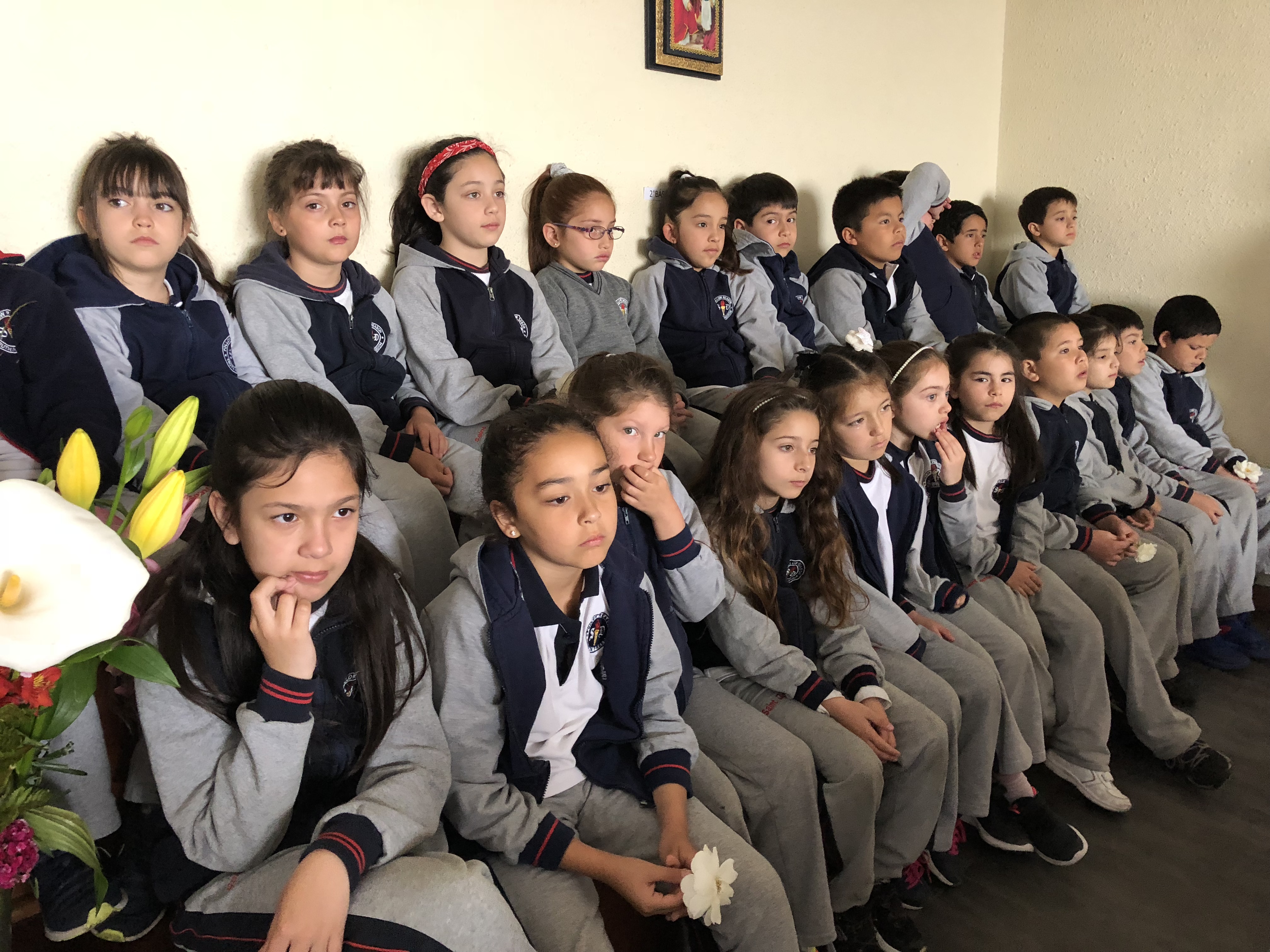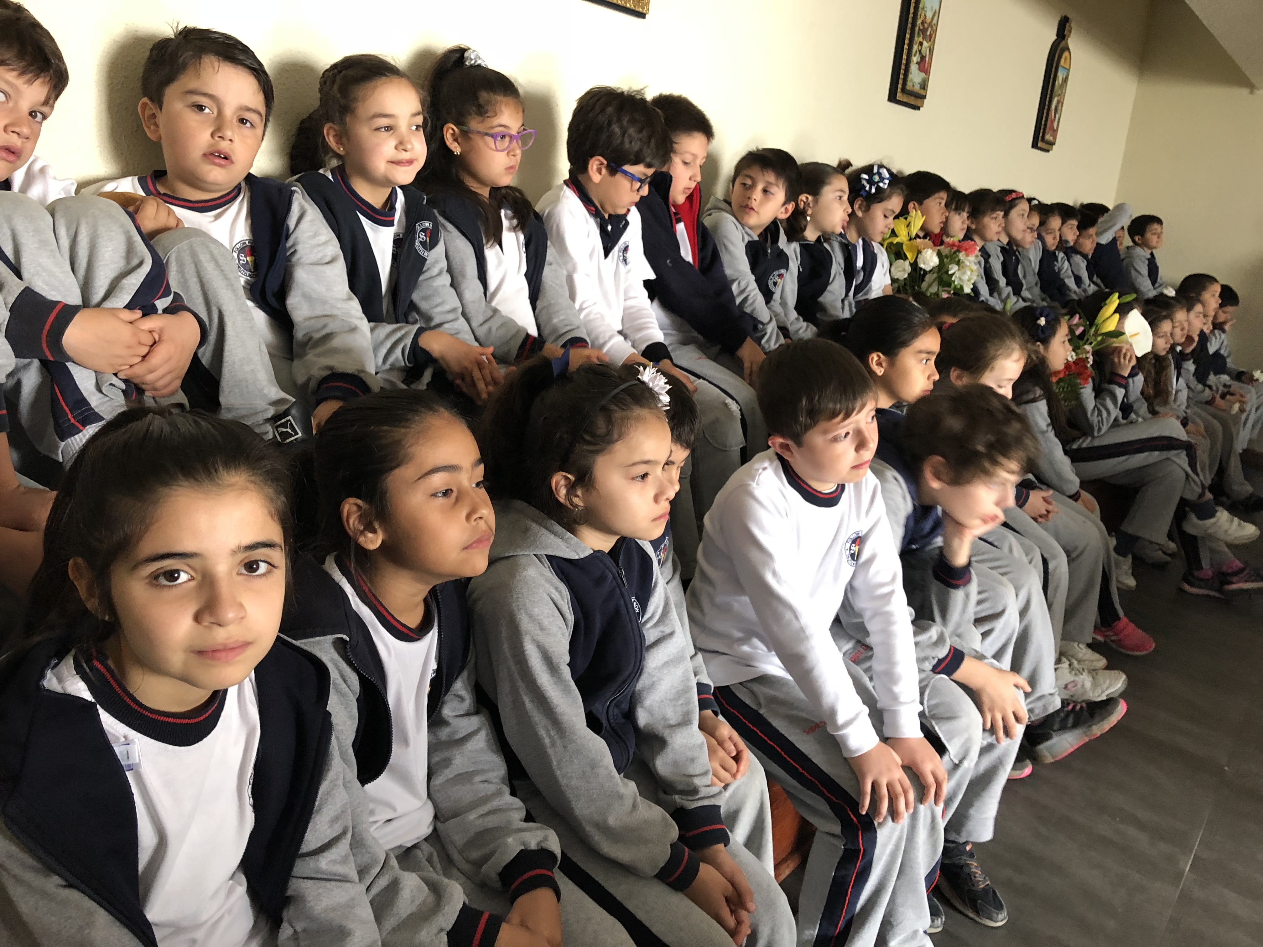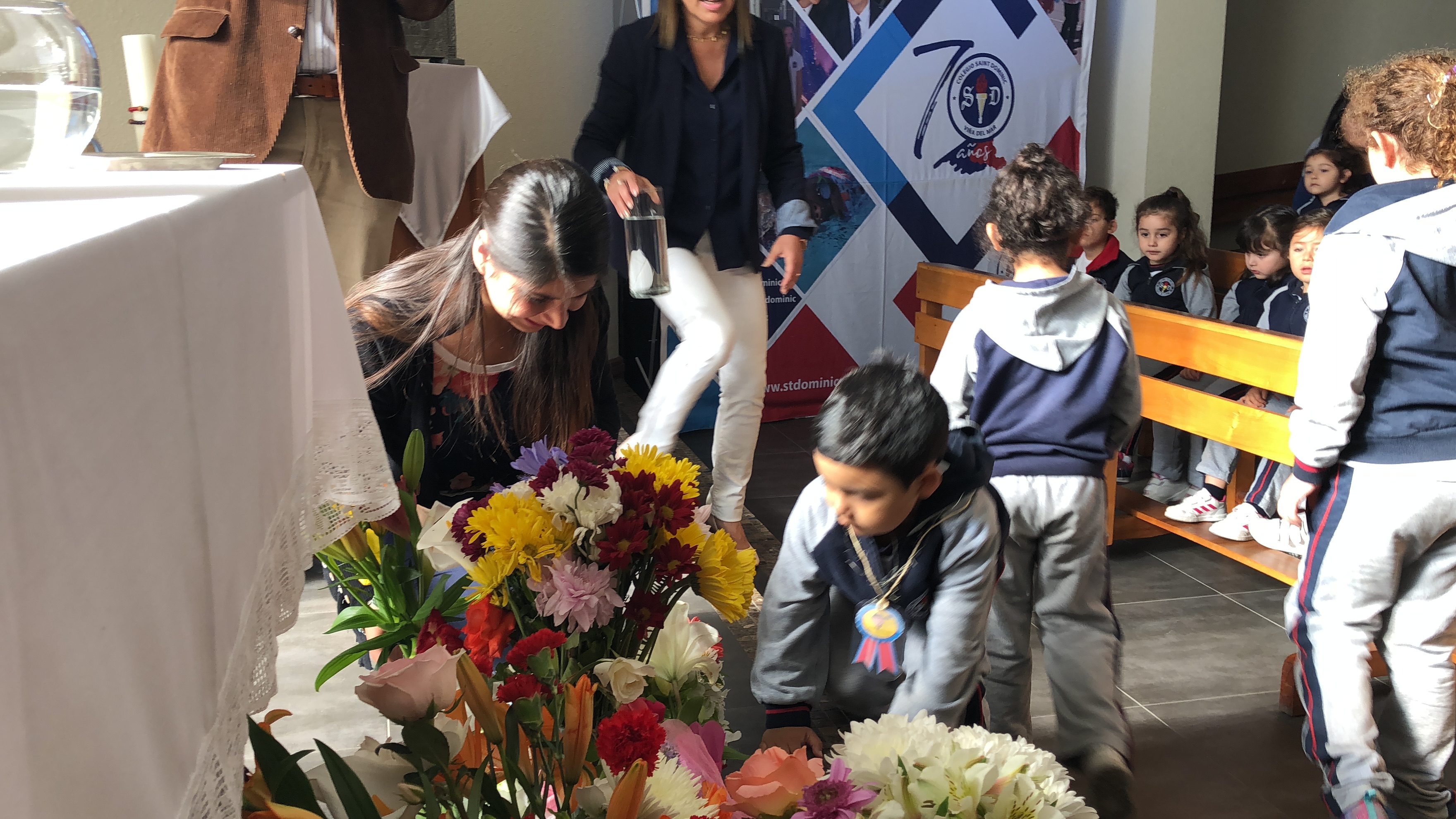 Los primero en acudir fue el entusiasta Ciclo inicial, el que con alegres cantos, llegaron a repletar a nuestra Madre con bellas flores, signo de amor y devoción que nuestro colegio profesa.