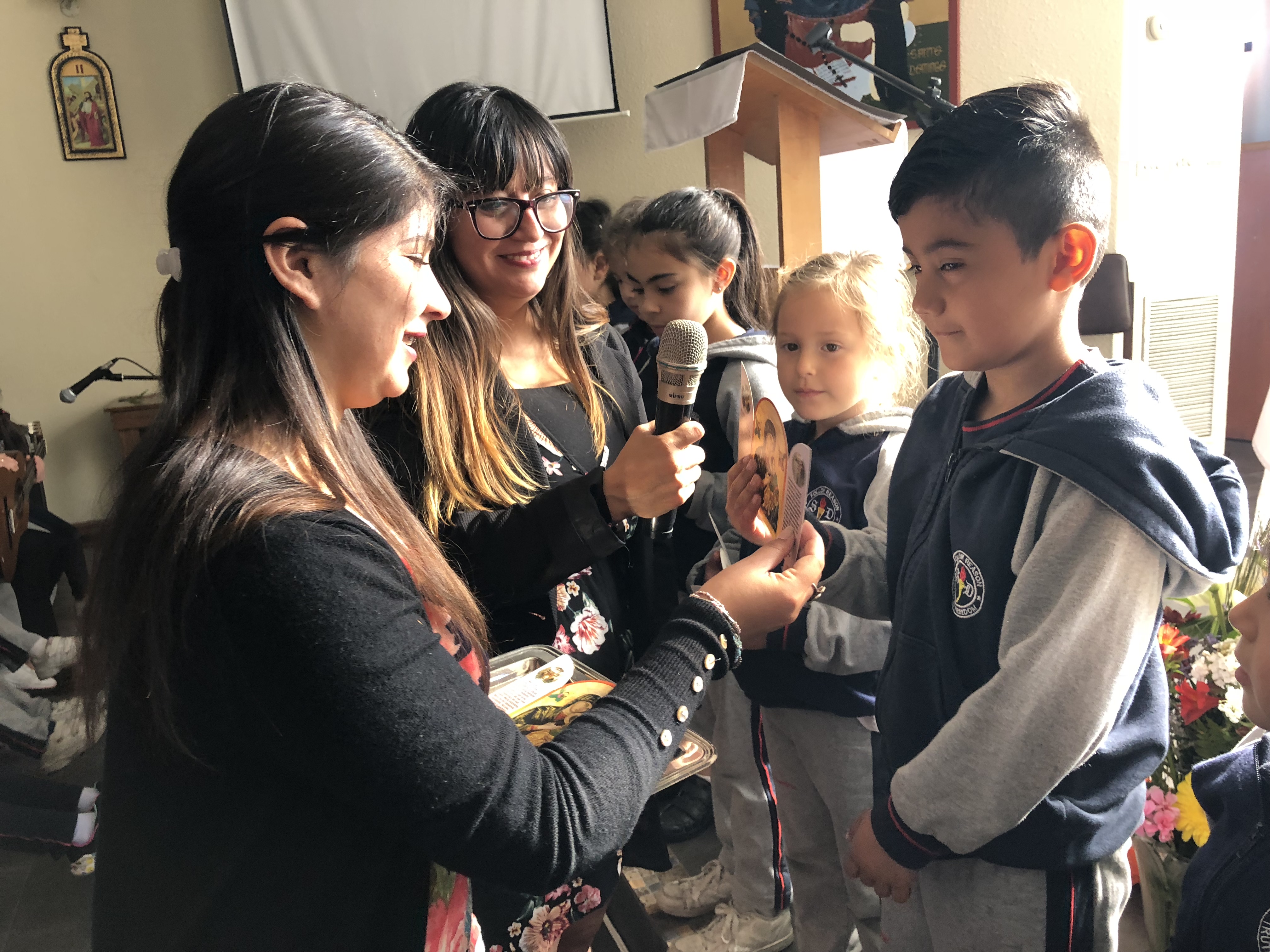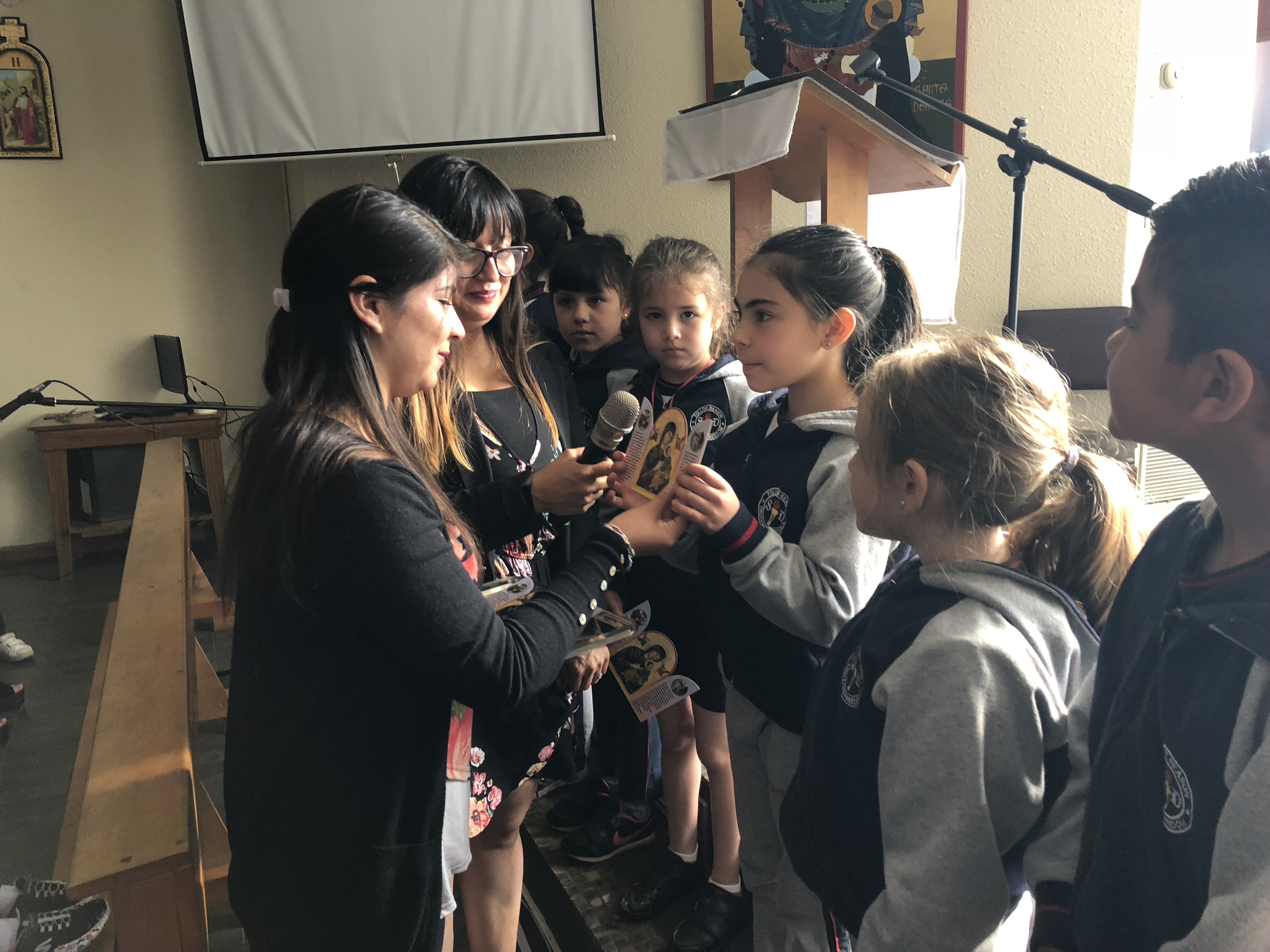 La celebración comenzó con las liturgias de ciclo inicial, básico y media. En ellas se entregaron un altar de María para acompañar el rezo diario.