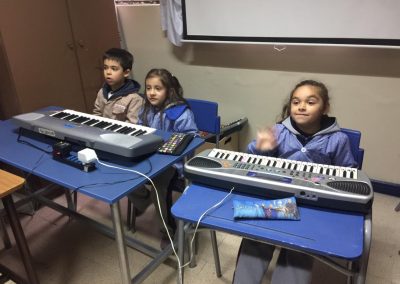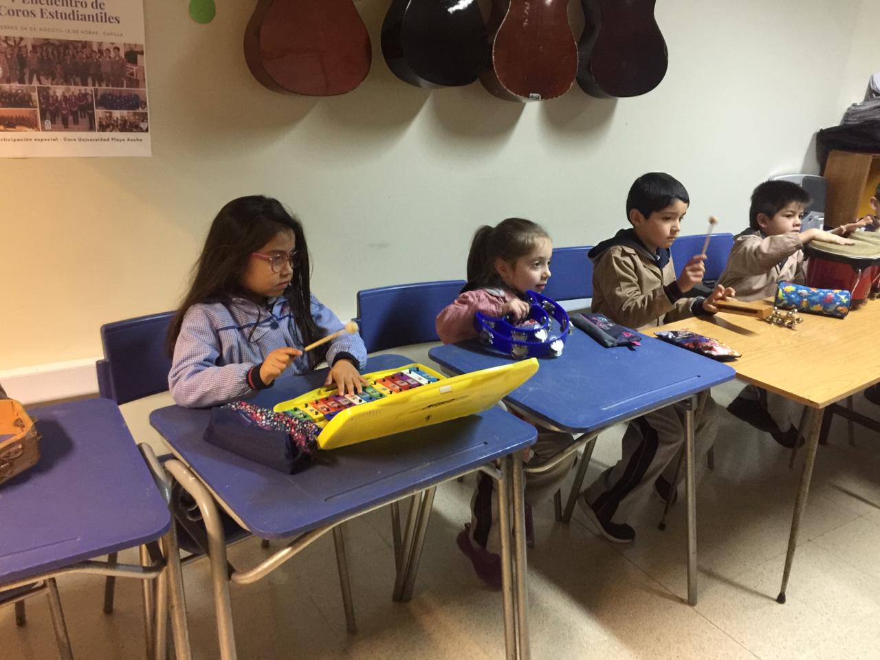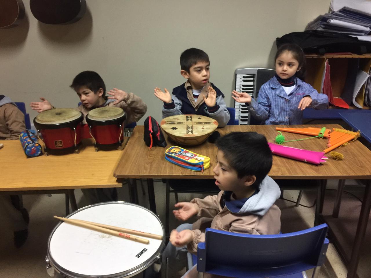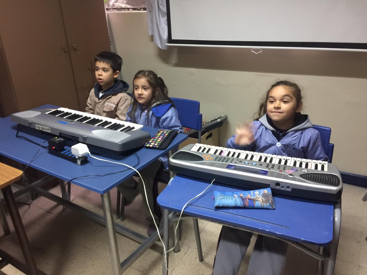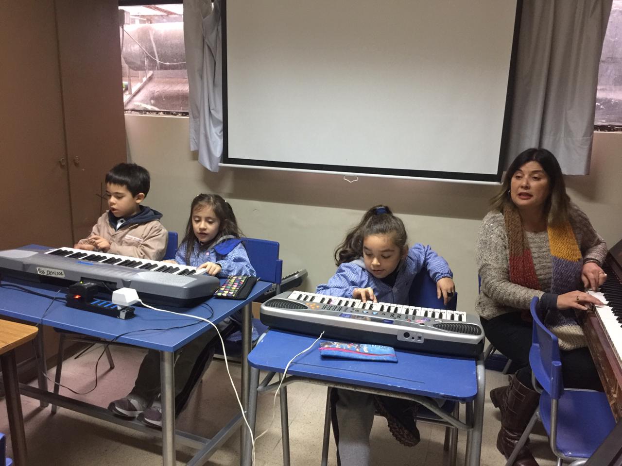 Hoy nuevamente los pequeños del colegio, Kínder B, a cargo de tía Valeska Gallardo visitaron la sala de música donde Miss Denisse Zarate los motivo a descubrir nuevos sonidos y ritmos.