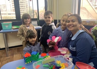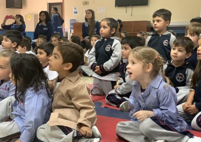 Este mismo día los pequeños de Play Group, Prekinder y Kinder, quienes junto a sus orgullosos padres, vivieron su primer día dentro de las aulas de nuestro colegio. Más tarde, los pequeños participaron en una entretenida actividad de cuentos, en el que educadoras y asistentes recrearon para ellos el cuento de los Tres Cerditos.